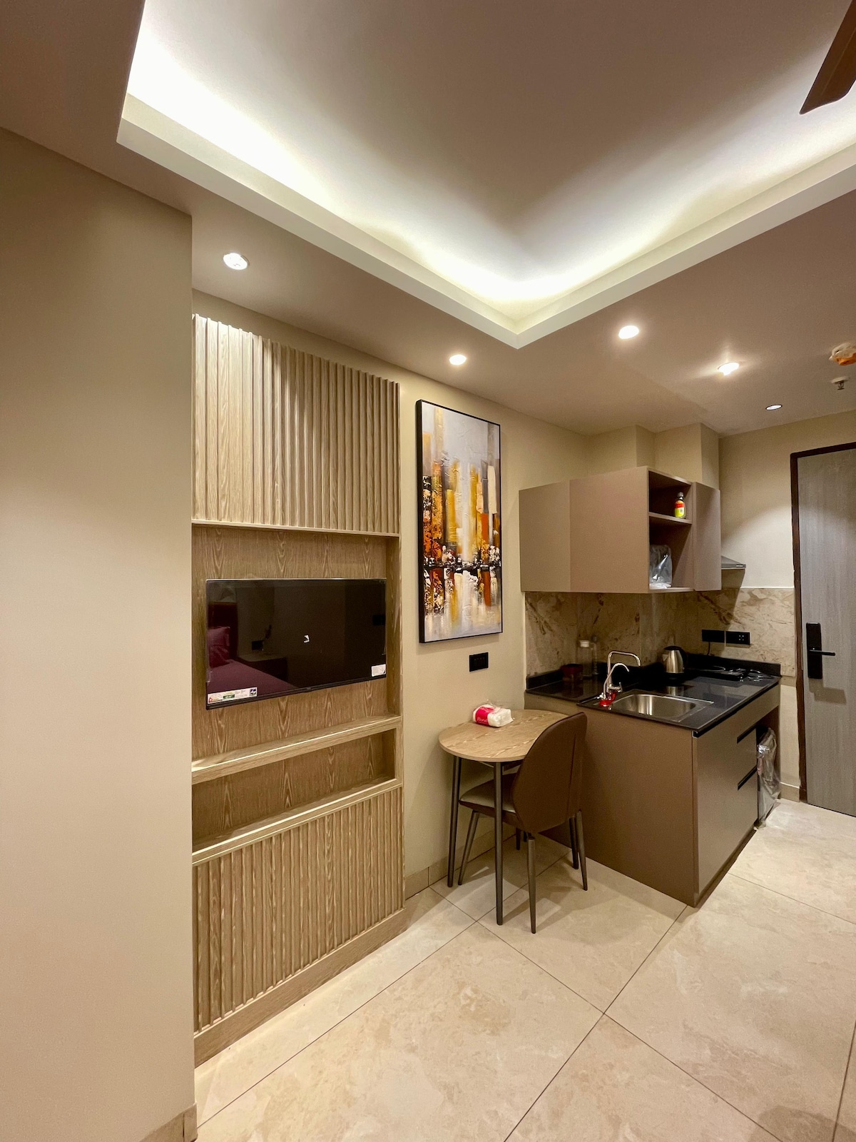 ✨ Stiúideo Galánta le Radhairc ar na Spéartha | Urlár Ard | Balcóin | Prime Noida Múscail os cionn na cathrach san árasán stiúideo galánta ard-urláir seo, atá deartha go cúramach d'aíonna a bhfuil meas acu ar chompord, ar phríobháideacht agus ar eispéireas fanachta den scoth. Tá an spás seo suite i gceann de na túir is mó a bhfuil tóir air in Noida, agus tá radhairc áille oscailte, balcóin phríobháideach, agus intí ar chaighdeán óstáin ann—foirfe do thaistealaithe gnó, do lánúineacha, agus do thréimhsí fanachta fada nó gearra.