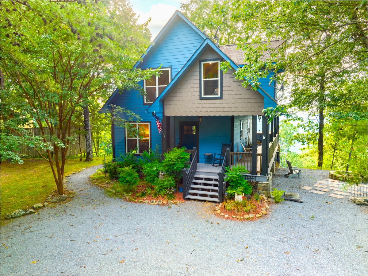 Cábán logála nua - athchóirithe le radhairc iontacha d'éirí na gréine ó dhroim os cionn Waterfront Bay & an príomhbhealach. Leathbhealach idir Guntersville agus Scottsboro. Níl ach 1 1/2 mhíle go dtí seoladh agus stóráil an bháid ag Waterfront. Áiteanna gar do - Goosepond, Cathedral Caverns, raon lámhaigh Cavern Cove, G'ville St. Park, zip - línte. 8x40 deic clúdaithe, paitió w/firepit, gríoscáin gháis & gualaigh, poll arbhair, dairteanna, dhá thobán te, cúig chadhc, canú amháin w/fearas, agus leantóir. Fáilte roimh mhadraí (ach gan fál). Lig do scíth agus bain sult as!