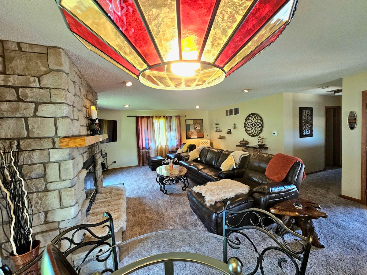Éalaigh chuig do thearmann sléibhte fairsing féin nach bhfuil ach 8 míle ó lár na cathrach stairiúla Galena! 2 nóiméad go Sliabh Chestnut. Bain sult as tobán te úrnua, poll dóiteáin le hadhmad saor in aisce, beárbaiciú gáis, agus paitió - foirfe d'oícheanta samhraidh nó laethanta titim briosc. Caith do laethanta ag fánaíocht, ag gailf, ag siopadóireacht, nó ag dul ar thurais áille fíona. San fhómhar, déan iniúchadh ar dhuilliúr bríomhar, ar fhéilte agus ar dhraíocht áitiúil. Tar éis d'eachtraí, lig do scíth i do chompord agus i stíl le neart spáis don teaghlach ar fad.