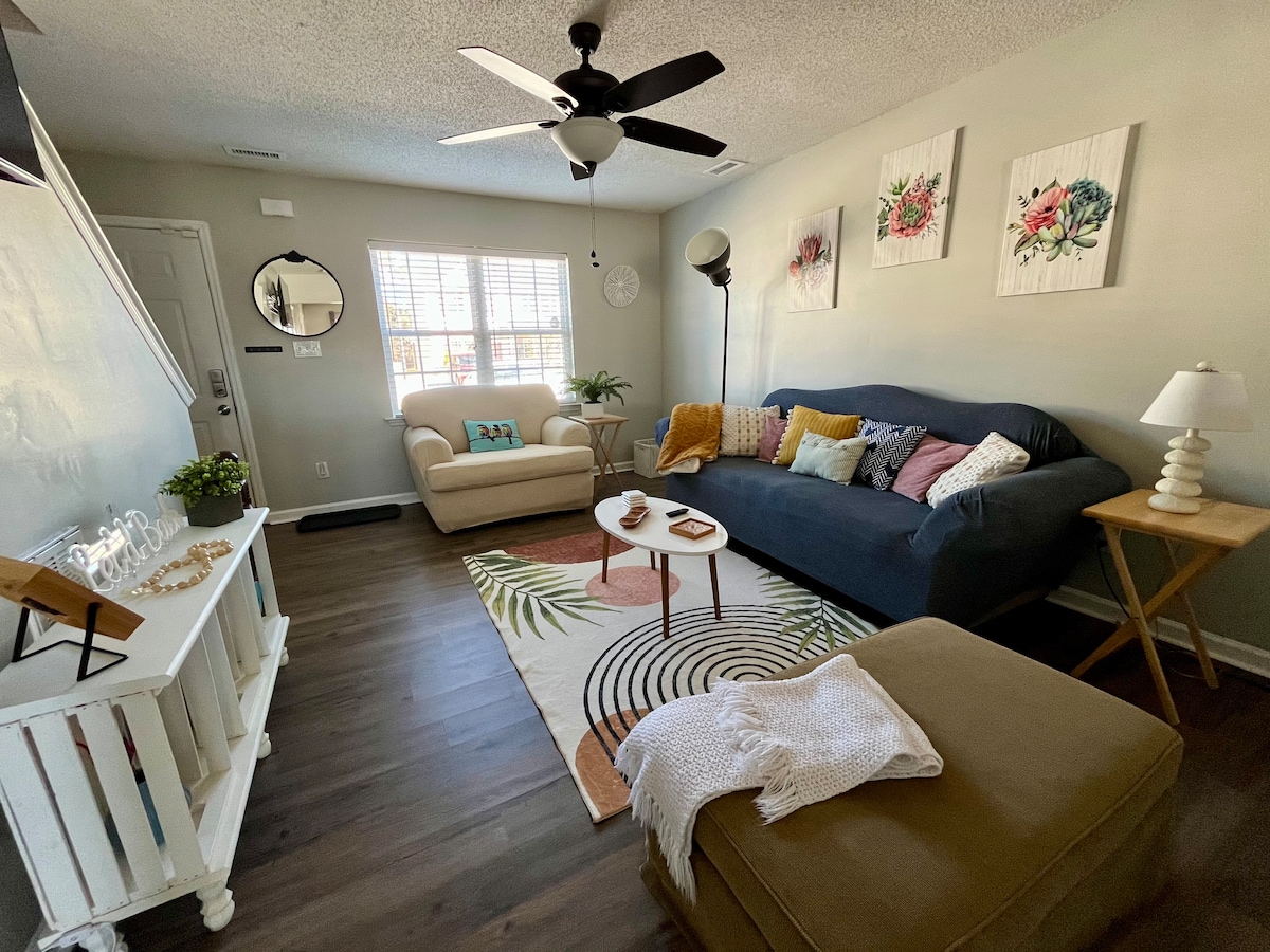 Is déphléacs nua - athchóirithe é Bungaló Boho le garáiste aon charr, atá suite i gcul - de - sac ciúin le clós cúil álainn coillteach a thugann an atmaisféar a bhaineann le bheith i sléibhte an NC. Cúig nóiméad ó bhialanna áitiúla, ó shiopaí grósaera agus ó shiopadóireacht, tá an Boho gar do Camp Lejeune freisin agus níl sé ach 30 -35 nóiméad ó Topsail Beach agus Emerald Isle. San áireamh leis an Boho tá Wi - Fi ardluais, 65" ROKU TV, meaisín níocháin/triomadóir, sorn, micreathonnán agus bunriachtanais uile na cistine + níos mó!