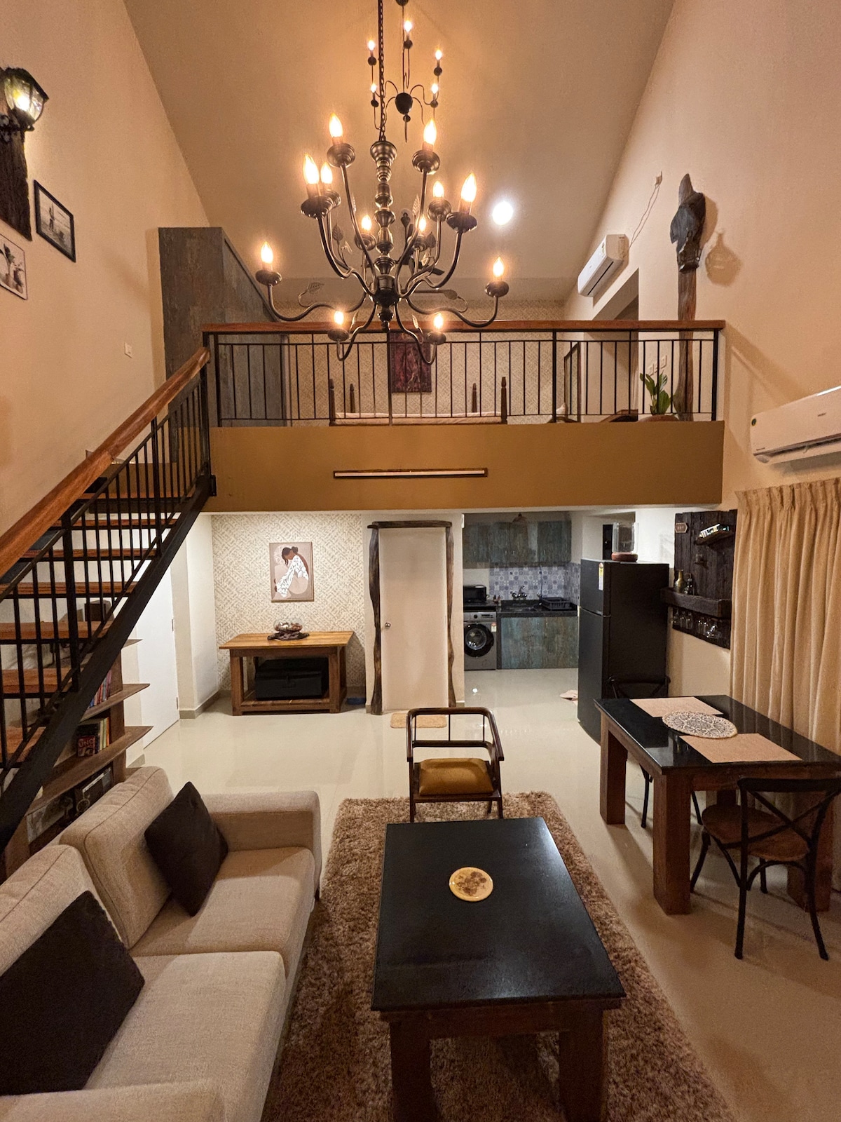 Is é seo an árasán stiúideo cluthar éalú rómánsúil idéalach do lánúineacha. Lonnaithe i gcroílár thrá Palolem, cuireann sé taobh istigh nua - aimseartha, leaba mhór rí, suí amach álainn lasmuigh le radhairc ar an ngairdín, agus cistin lánfheistithe. Agus stáisiún oibre tiomnaithe ar fáil, is féidir leat freastal ar ábhair a bhaineann leis an obair agus tú ag baint sult as d'fhanacht. Tá scútar ar cíos ar fáil go háisiúil ar leac an dorais, rud a ligeann duit iniúchadh a dhéanamh ar an gceantar áitiúil agus roinnt ama a thógáil ón réadmhaoin.