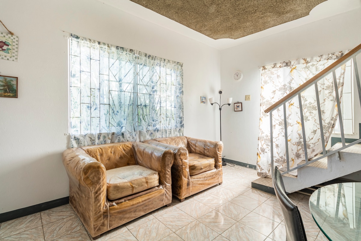 Éalaigh go suaimhneas inár n - árasán fairsing 2 sheomra leapa agus 2 sheomra folctha in Upton, Ocho Rios. In aice le Galfchúrsa Sandals, cuireann ár dtearmann suaimhneach radhairc iontacha agus atmaisféar síochánta ar fáil. Bain sult as an radharc ón áit choiteann agus ón mbalcóin. Beidh go leor spáis agat chun scíth a ligean agus taitneamh a bhaint as am ardchaighdeáin le daoine muinteartha leat. Cruthaíonn timpeallacht phictiúrtha an árasáin mothúchán sóláis atá foirfe don scíth. Níl ach 10 nóiméad sa charr ó thrá agus ó pholl gorm cáiliúil Ocho Rios.