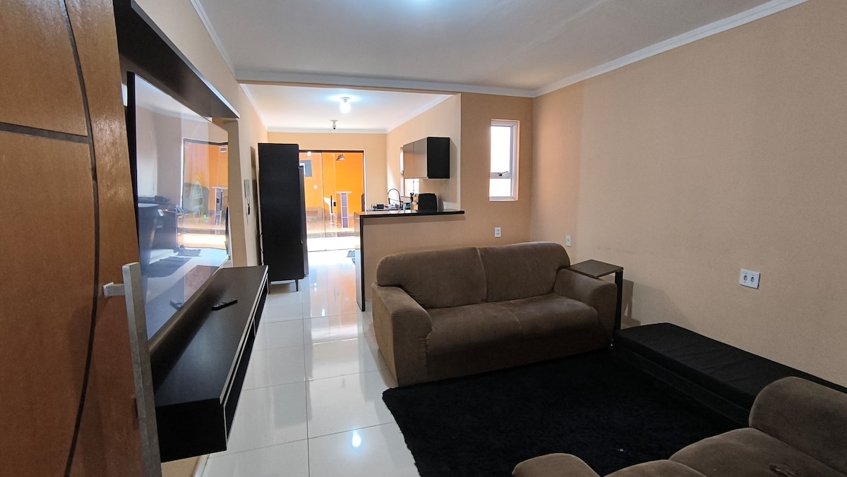Fáilte go Casa Luz. Tá 2 sheomra leapa ann, le leaba dhúbailte i ngach ceann acu, gaothrán iniompartha sa seomra suí, leaba dhúbailte, aerchóiritheoir iniompartha agus Wi-Fi. Is féidir leis freastal ar 6 aoi. In aice le stáisiún bus Alexandre Balbo agus Anhanguera, 13 nóiméad ó Hospital das Clínicas, Agrishow agus João Rock, tá bácús, ollmhargadh, cógaslanna, pizzeria in aice láimhe. Tá cistin sa teach ina bhfuil cuisneoir, sorn agus uirlisí, agus teirmeas. seomra folctha mór. gaineamh príobháideach lasmuigh le garáiste do dhá charr bheaga.