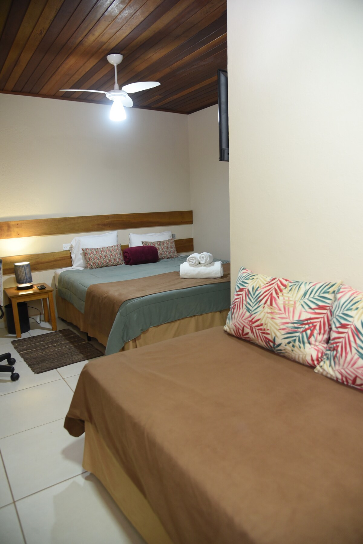 "Não sou Hotel, Pousada ou Hostel, mas EU e meus proprietários queremos hospedar você." Na propriedade que estou há uma linda e grande piscina, churrasqueira, Canto do Fogo, Garagem, Gramado e tudo isto fica EXCLUSIVO AOS HÓSPEDES. A residência dos anfitriões fica na propriedade e eles (duas pessoas) ficam de plantão para atender as demandas dos hóspedes. O café da manhã continental está incluso no valor da diária. Vem ser nosso hóspede.