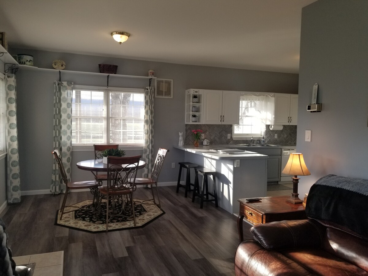Fáilte chuig The Getaway Cottage, teach gleoite dhá sheomra leapa, dhá sheomra folctha atá neadaithe i suíomh síochánta tíre, atá suite 3.5 míle ó Shepherdstown. Tugann ár suíomh rochtain éasca ar na gníomhaíochtaí spreagúla go léir agus ar na nithe is díol spéise atá le tairiscint ag an bhfriochtán thoir, bain sult as tiomáint ghearr tíre chuig bia, siopadóireacht, cosáin fánaíochta, raftú uisce bán agus eachtraí cadhcála. Tá baile stairiúil Harpers Ferry 25 nóiméad ar shiúl, agus 15 nóiméad go dtí Antietam Battlefield.