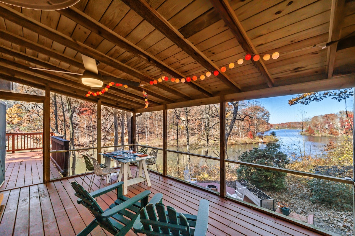 Cábán teolaí i bpobal príobháideach nóiméad ar shiúl ó lár bhaile Harper's Ferry. Tá an teachín seo sna crainn suite ar bhóthar coille agus tá páirceáil ann do 3 fheithicil. Bainfidh tú taitneamh as deic mhór, tobán te inséidte, poll dóiteáin lasmuigh, agus rochtain gheataithe ar áit álainn phicnice ina bhfuil láthair chanú/cadhc/snámha ar an taobh thoir d'Abhainn Shenandoah. Má tá suim agat i iascaireacht/bádóireacht/tiúbair/snámh ní féidir an áit seo a shárú . Téigh ag marcaíocht ar an traein comaitéara go DC chun páirt a ghlacadh sna suíomhanna. Bain sult as!