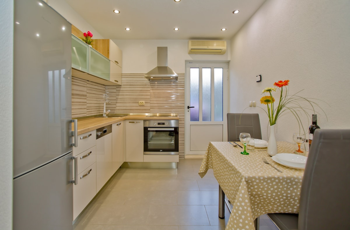 Árasán lámhdhéanta i dteach beag teaghlaigh, atá suite díreach nóiméad ar shiúl ó phríomhchearnóg na cathrach agus ón gcuan, i gceantar ciúin in aice le Mainistir Franciscan agus an trá, tá an chuid is mó den troscán a rinneamar ann chun spás uathúil deartha a dhéanamh de.