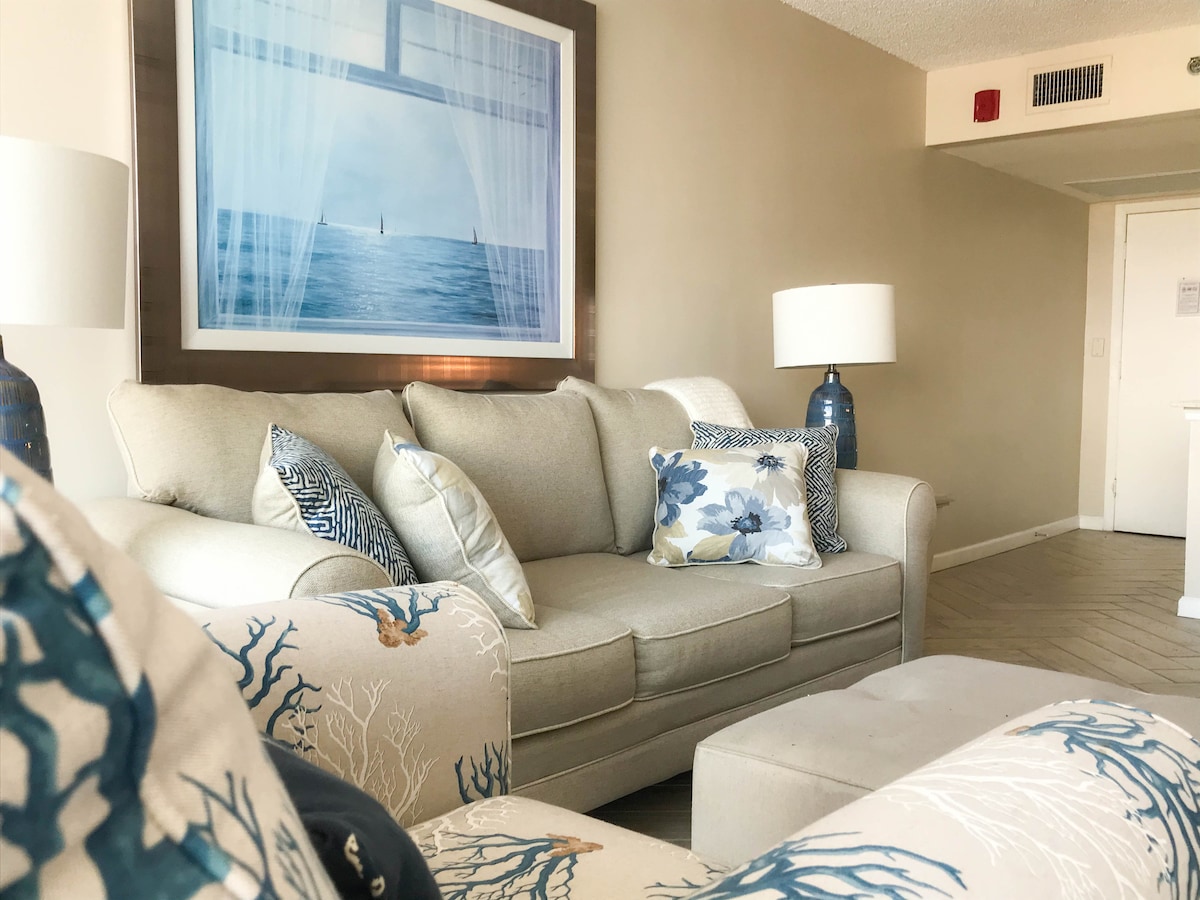 Bain sult as saoire shuaimhneach cois trá ag ár 2 sheomra folctha álainn cois trá, árasán 2 leaba atá athchóirithe agus nuashonraithe go hiomlán! Chomh luath agus a théann tú isteach, braitheann tú ar laethanta saoire lenár vibe trá i ngach seomra, foirfe do theaghlaigh nó do 2 lánúin atá ar saoire le chéile. Tá radharc iontach ar an aigéan agus ar an trá sa phríomhbhalcóin! Ceadaítear madraí faoi bhun 50lbs - táille peataí nuair a dhéantar áirithint. Tá 2 sheomra folctha 1 leaba 1 againn san fhoirgneamh béal dorais freisin.