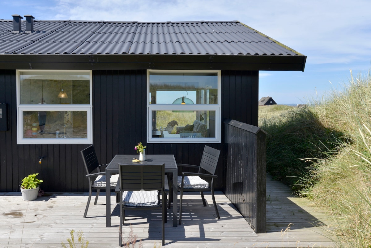 Tá an teach suite go hálainn i gceantar ciúin nach bhfuil ach 200m ar an trá agus 400m chuig páirc an teaghlaigh Farmfun. Tá an teach 150m2 agus tá 5 sheomra leapa, 2 sheomra folctha, cithfholcadán lasmuigh, cistin mhór/seomra suí/seomra suí agus tolglann ghalánta le troscán tolg, beár ard agus cistin lasmuigh ann. Is féidir doirse leithead ag an dá thaobh den tolglann a oscailt, mar sin bíonn an seomra mar chuid lárnach de na hardáin mhóra mórthimpeall an tí. Le ardán clúdaithe 50m2 is féidir leadóg bhoird a imirt. Sa ghairdín tá trampailín agus go leor spáis le haghaidh gníomhaíochta