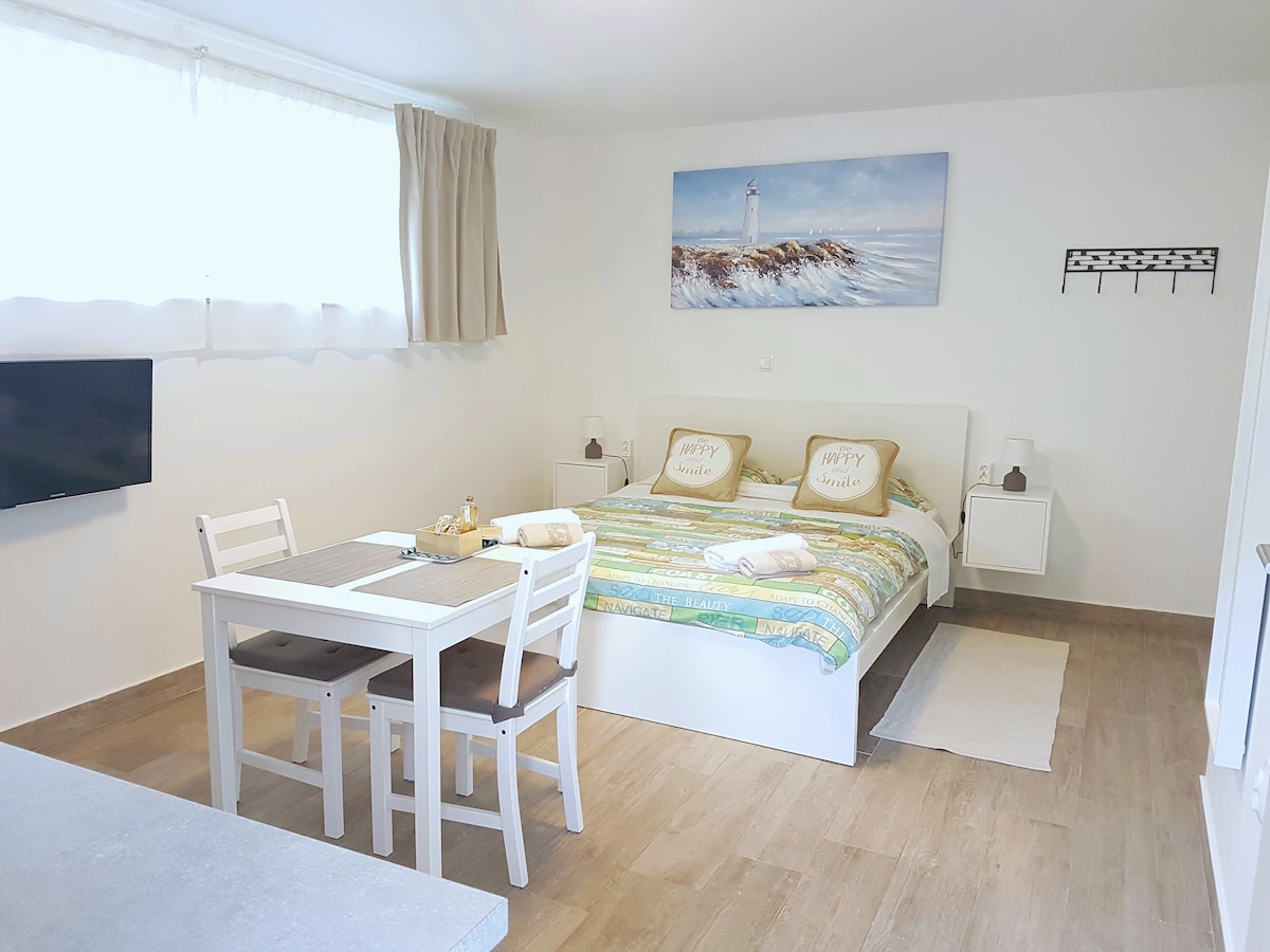 Tá ár n - árasán stiúideo suite i seanbhaile meánaoiseach Mošćenice. Tá an t - árasán cosy agus maisithe go nua - aimseartha. Tá 32m2 ann. Ar an urlár íochtarach tá an seomra leapa agus an seomra folctha agus ar an urlár uachtarach tá an chistin ina bhfuil an seomra suí. Os comhair an árasáin tá áit bheag ghlas atá oiriúnach do chaife nó do ghloine fíona. Is féidir an trá mhéaróg álainn a bhaint amach trí staighre tríd an bhforaois. Tá an baile an - chiúin agus síochánta. Tá an dúlra timpeall air agus tá sé oiriúnach le héalú ó strus.