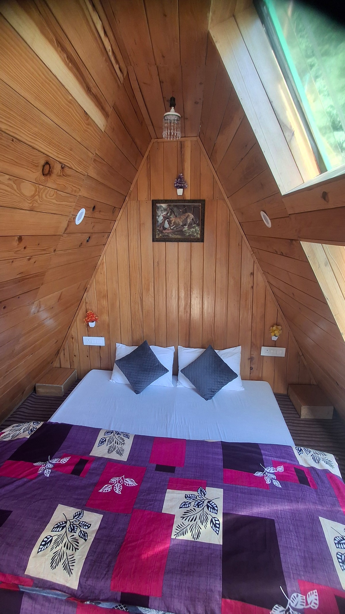 Get away from it all when you stay under the stars. Please note, there is 250 meters trek from parking spot to the property. We will pick your luggage. What You’ll Love - ★ Cozy master bedroom plus a Balcony ★ Beautiful wooden architecture ★ Wi-Fi ★ Power backup ★ Delicious in-house food service ★ Garden with bonfire area Please note - - Breakfast, meals, room heaters, bonfire, and other services are charged separately and are not included in the stay price.