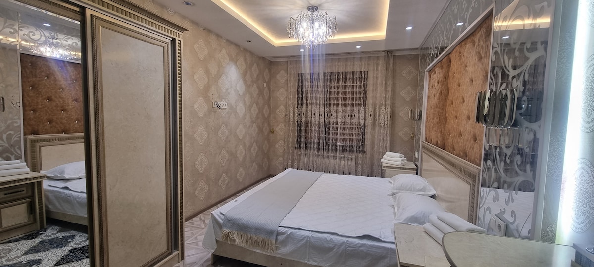 ОсTá an t - árasán suite i lár Samarkand, os coinne Registan Square. Ón áit seo is féidir leat siúl go dtí mausoleum Amur Temur, Siab Bazaar, Bibihonim agus go leor áiteanna inspéise eile.