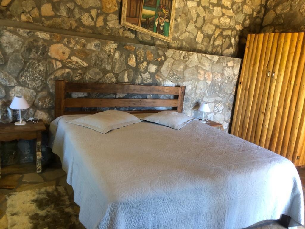 Tá Casa de Pedra, i stíl chomhaimseartha, ar fheirm ar imeall damba. 2 sheomra, cistin oscailte, teallach éiceolaíoch, ardán le beárbaiciú, bord agus timpeallacht le tolg. Tá tobán te adhmaid aonair i gceann de na seomraí folctha, glónraithe agus ag breathnú amach ar ghairdín beag. Leadóg Trá, Seas Suas, cadhcanna agus rothair. Cé sa damba, parainha i gceann de na lochanna, redário, potho le haghaidh dóiteáin, cithfholcadán, cachoeirinha, cosáin, athfhoraoisiú, féarach le beithígh déiríochta, táblaí lasmuigh. Wi - Fi, Teilifís Chliste agus Alexa.