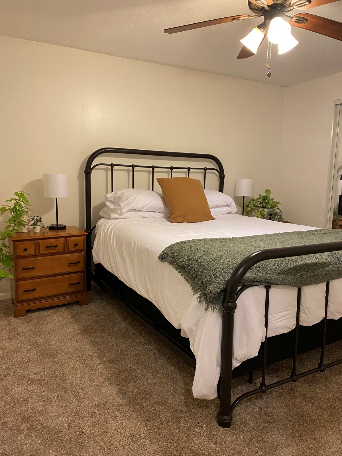 Unwind in a renovated 430 sq. ft private studio suite, located on the lower level with convenient side access. The suite features a comfortable queen-size bed, perfect for two adults, making it an excellent choice for solo adventurers, business travelers, or couples. Whether you’re here for a night or a week, you’ll appreciate the prime location, just 15 to 30 minutes from Kansas City’s top attractions, stadiums, iconic landmarks, and renowned BBQ spots. It’s the perfect home base for a getaway.