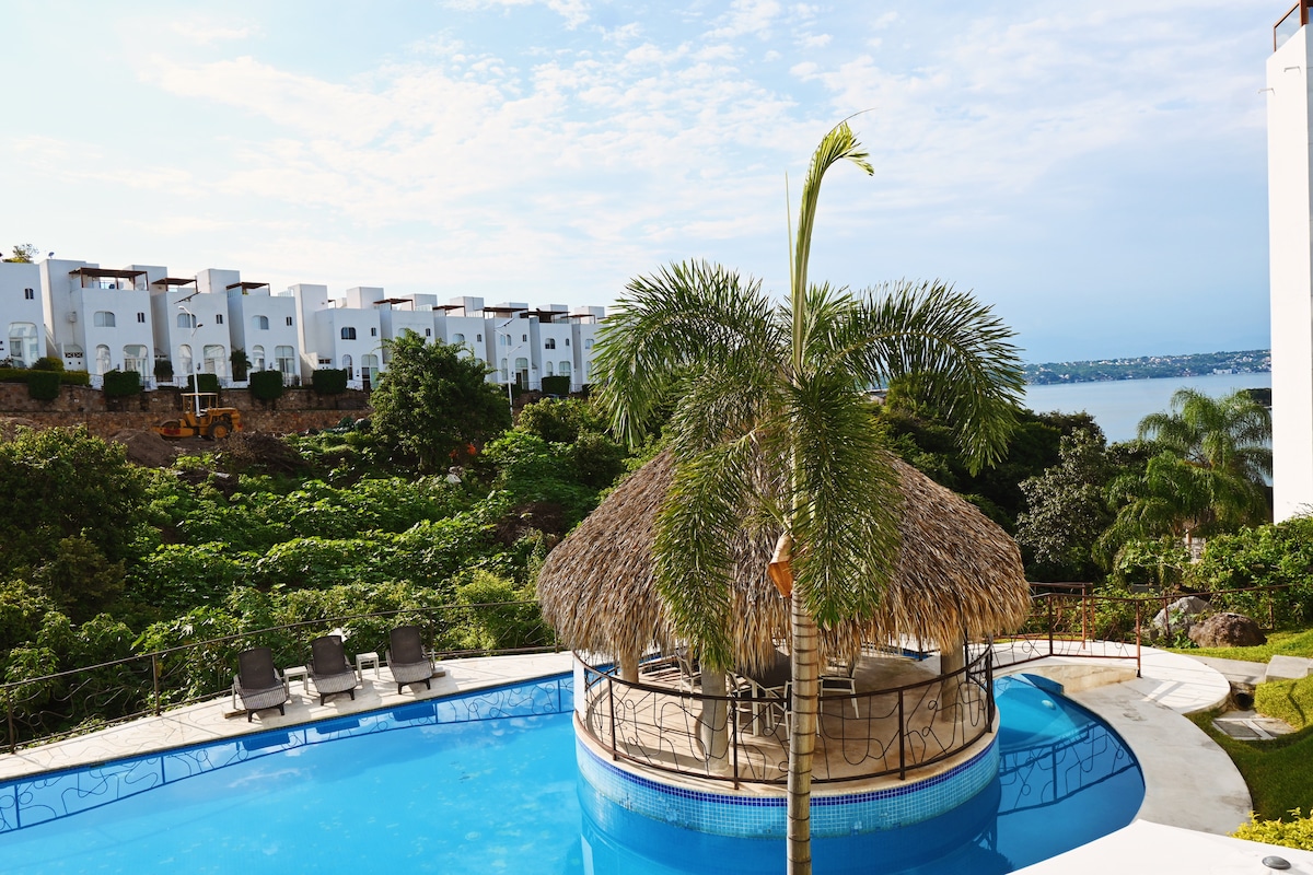 Árasán le Radharc Coquette 🌅✨ Faigh an radharc is fearr ar Tequesquitengo! 🏝️ Árasán nua-aimseartha do 6 dhuine (2 sheomra leapa, 2 leaba dhúbailte agus leaba dhúbailte amháin ✅ Gach rath: Lochán príobháideach álainn le radharc iomlán ar an loch. 📸 🏝️ Rochtain ar thrá Playa Coqueta (faoi íosmhéid tomhaltais), áit ar féidir leat taitneamh a bhaint as: 🏊♂️ Linn snámha agus bealach isteach díreach chuig an loch 🍴 Bialann ina bhfuil bia blasta. 🚤 Trealamh báid agus trealamh muirí ar cíos. 🕒 Seiceáil isteach 12:00 pm 🕒 Seiceáil amach 5:00 p.m. 🏢 4ú hurlár (rochtain ar an staighre)