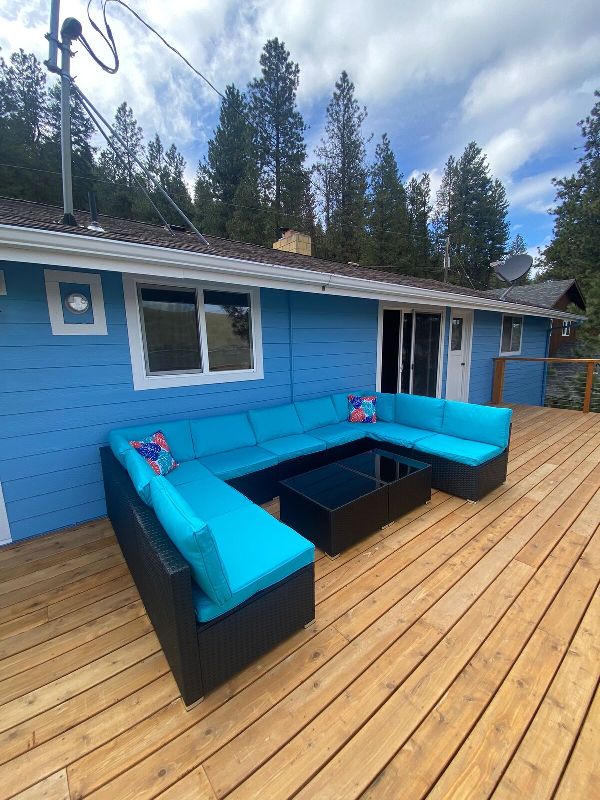Aoibhneas i laethanta saoire teaghlaigh murab ionann agus ceann ar bith eile ag ár dteach fíorálainn 1,600 troigh cearnach ar an taobh thiar de Wallowa Lake. Sábháil só na rochtana ar an loch príobháideach agus duga príobháideach báid gan stró (*séasúrach) le linn d'fhanachta agus tobán te príobháideach. Cibé acu an bhfuil tú ag sipping maidin caife ar an deic, ag greadadh leis an teaghlach, nó ag breathnú ar na réaltaí ón tobán te, cuireann Ponderosa Pines an suíomh foirfe ar fáil le haghaidh cuimhní cinn dodhearmadta an tsamhraidh.