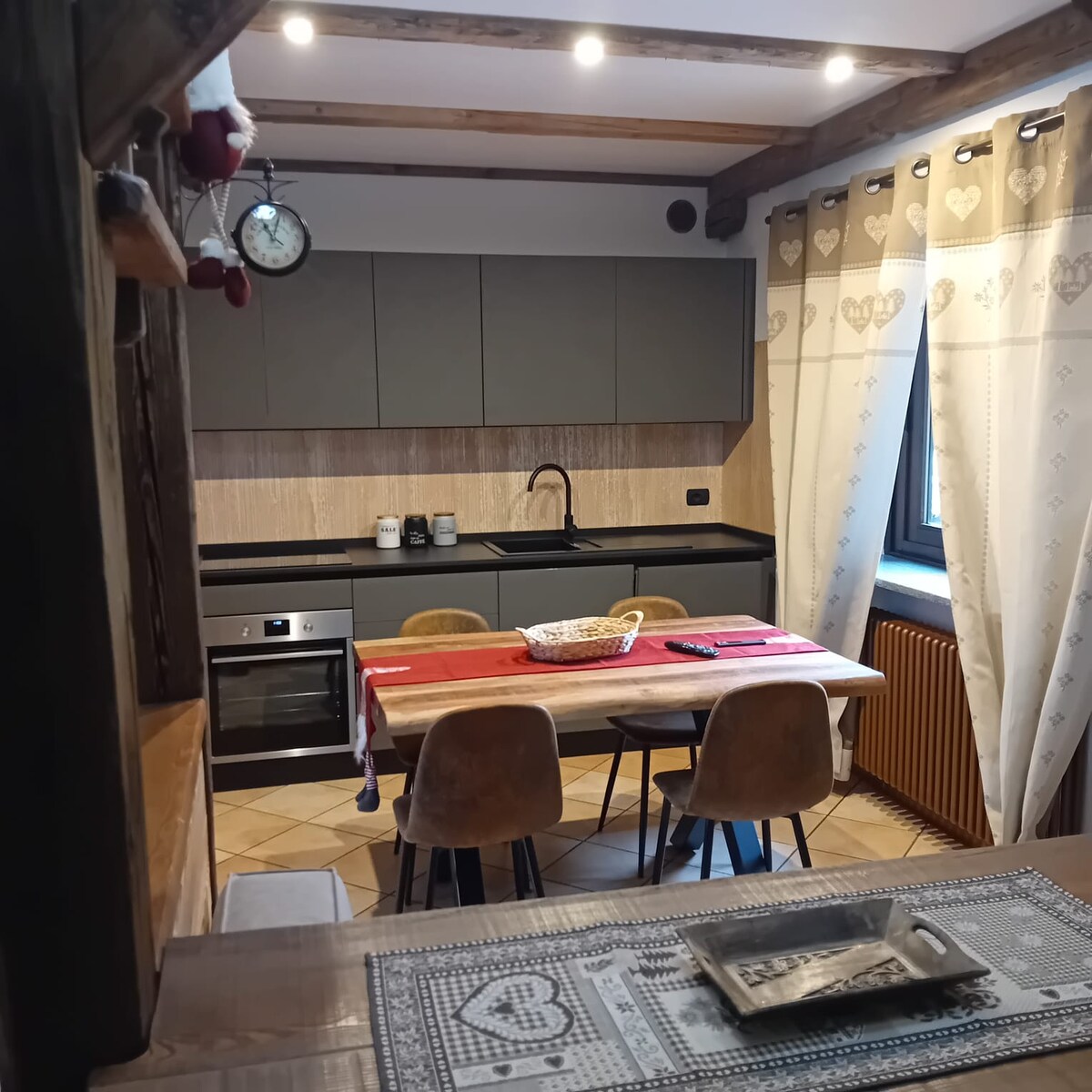 Sléibhte Alpa. An Iodáil. Aosta Valley. Cábán i sráidbhaile beag ag 1600 méadar,i síocháin na móinéir, na ba agus na sléibhte féaraigh. Sneachta (de ghnáth) sa gheimhreadh. Áit de chroí, athchóirithe go grámhar ag caomhnú bíomaí ársa an dín. Radharc iontach ó na fuinneoga móra agus suaimhneas speisialta dóibh siúd atá ar thóir síochána, croíúlachta agus scíthe. Tá an troscán an - deas: adhmad thar aon rud eile, ach freisin dathanna níos bríomhara, agus compord nua - aimseartha. Turais chiúin, ar bhróga sneachta nó ar sciáil araon.
