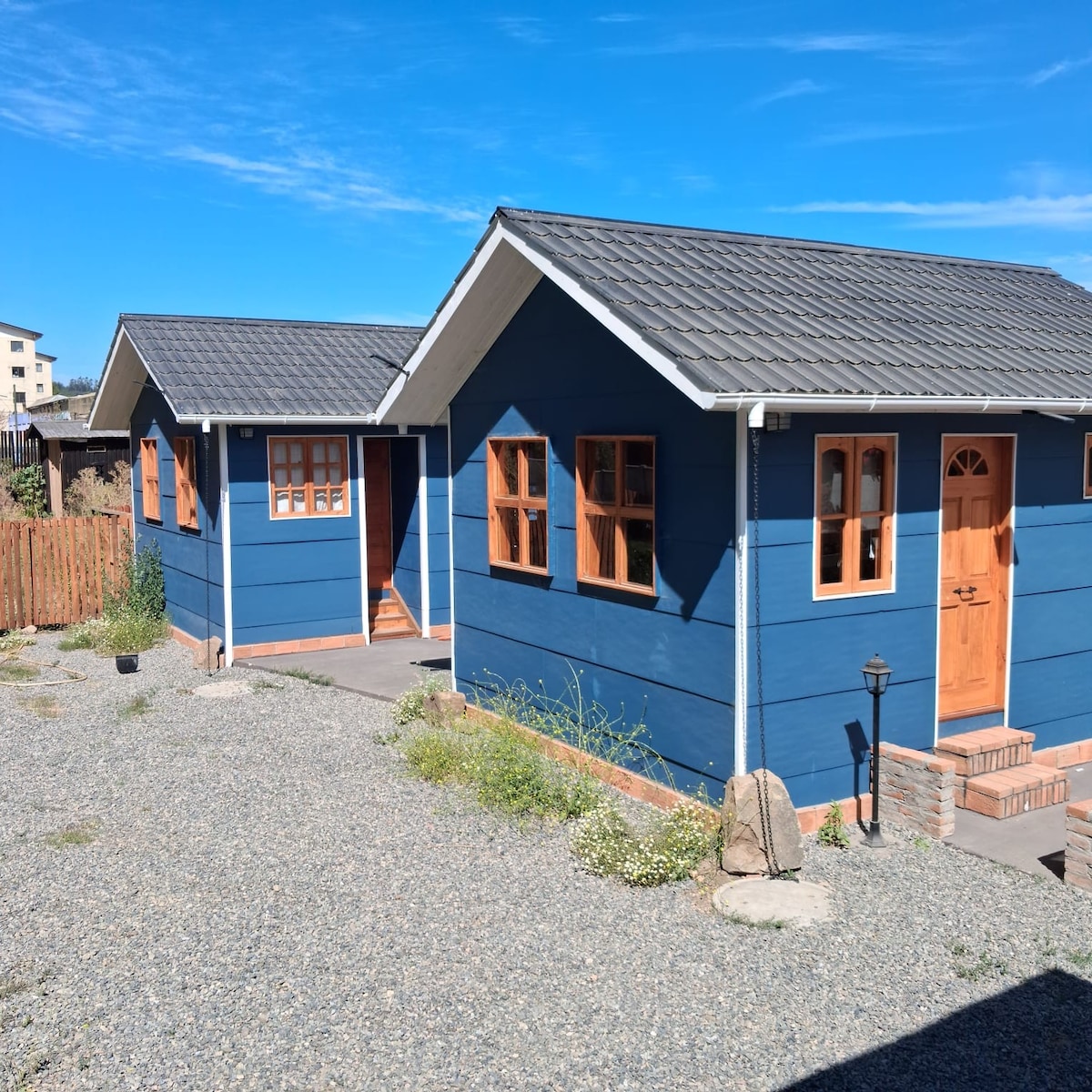 Cabaña amoblada para hasta 5 personas, ideal para relajarse en pareja o disfrutar en familia. Incluye: - Habitación 1 con cama de 2 plazas - Habitación 2 con 2 camas y 1 litera (1 ½ plaza). - Baño (incluye 3 toallas) - Living y cocina americana con cocina a gas, refrigerador y horno eléctrico. - Terraza (incluye comedor y parrilla) Los huéspedes tienen libre acceso a piscina. Quincho, tinaja y sauna con reserva previa y valor adicional.