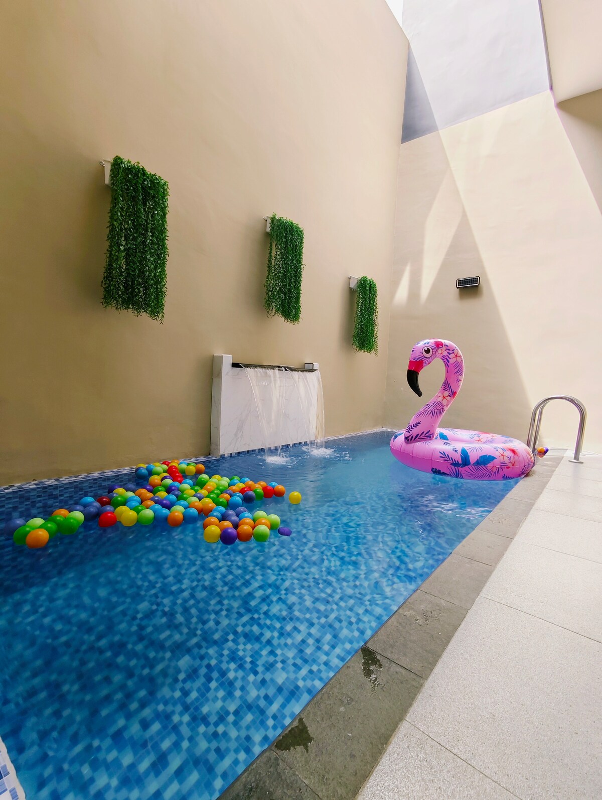Fanachtaí ALENA - Malang Fáilte roimh ár villa is nuaí! Cibé acu an bhfuil tú ag obair go cianda nó ag taisteal le teaghlach nó le cairde, is rogha iontach é 1 Family BR ina bhfuil 2 leaba mhóra le linn snámha phríobháideach do do lóistín nuair a thugann tú cuairt ar Malang. As seo, is féidir le haíonna lántairbhe a bhaint as gach rud atá le tairiscint ag an gcathair bhríomhar. Agus suíomh áisiúil aige, tá teacht éasca ag an réadmhaoin ar chinn scríbe nach mór cuairt a thabhairt orthu in East Java. Tá mé ar bís le tú a óstáil inár villa! — @alena.stays
