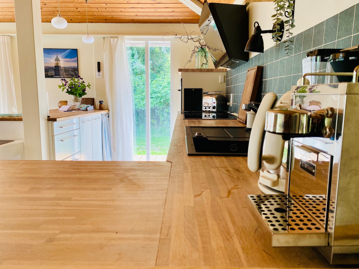 Teach saoire álainn a thóg mé féin i 2005. Tá sé suite i sráidbhaile beag i gceantar cosanta Staunsfjord, cúpla céad méadar ón uisce, áit a bhfuil cuan beag dinghy. Teagmhasach, an tsaoráid chalafoirt is sine sa Danmhairg (a tógadh idir 220 agus 380 AD) 500 m ó thuaidh tá an chanáil Lochlannach ó 725 AD, áit a bhfaighidh tú ag an taobh thiar an trá is fearr ar an oileán. Tá codanna ón scioból níos sine sa teach 70 méadar cearnach, chomh maith le roinnt foirgneamh atá beagán uathúil ó scartálacha. Ní úsáidtear an cheardlann thíos staighre le linn cíosa