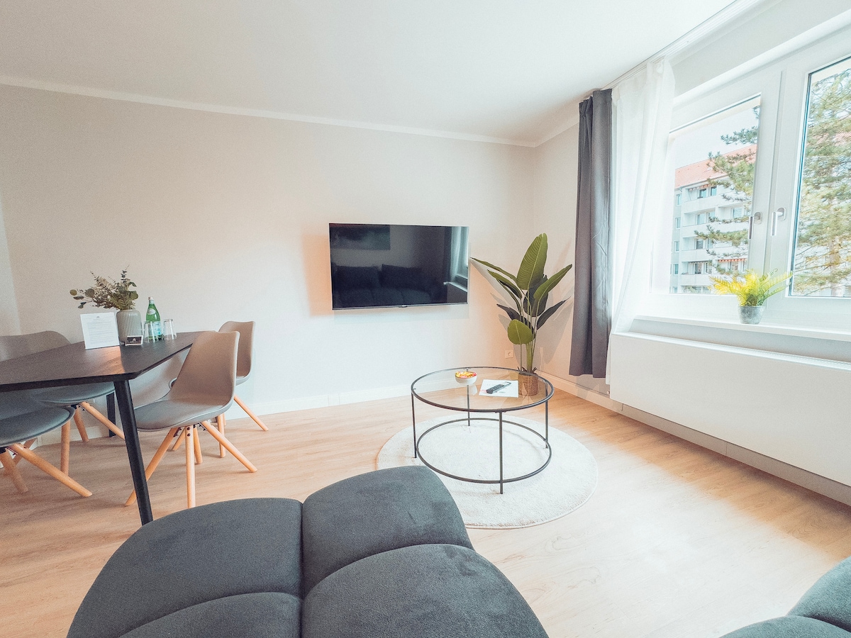 Welcome to the Halloren Suite in the heart of Halle (Saale) city center! This stylishly furnished suite combines historic charm with modern comfort and offers everything you need for a relaxing stay: → King-size bed for a restful sleep → Smart TV & comfortable seating areas → Free high-speed Wi-Fi → Private parking included → Fully equipped kitchen with coffee maker and dishwasher → Bathroom with bathtub and shower → Private washing machine - for longer stays :) → Private balcony for relaxing