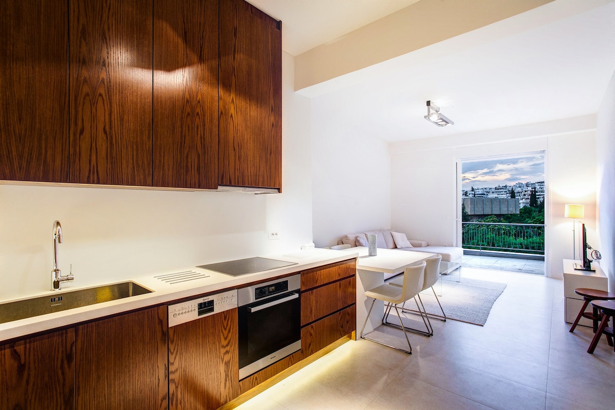 75 méadar cearnach le seomra suí mór & cistin, 2 sheomra leapa (ensuite amháin), 2 sheomra folctha. Péinteáilte as an nua in 2025, cuireadh rudaí beaga tuisceanacha leis amhail calafoirt USB - C, gaothrán síleála & meaisín Nespresso. Gnéithe fearais Miele. Balcóin le radhairc iontacha Acropolis. Is siúlóid 5 nóiméad é Kolonaki. In aice le hiompar poiblí, bialanna, siamsaíocht oíche, músaeim agus gníomhaíochtaí atá oiriúnach do theaghlaigh. Taitneoidh sé go mór leat don radharc, don solas, don dearadh tuisceanach, don suíomh agus don bhalcóin. Go hiontach do lánúineacha, do thaistealaithe aonair, d'aíonna gnó & do ghorta.