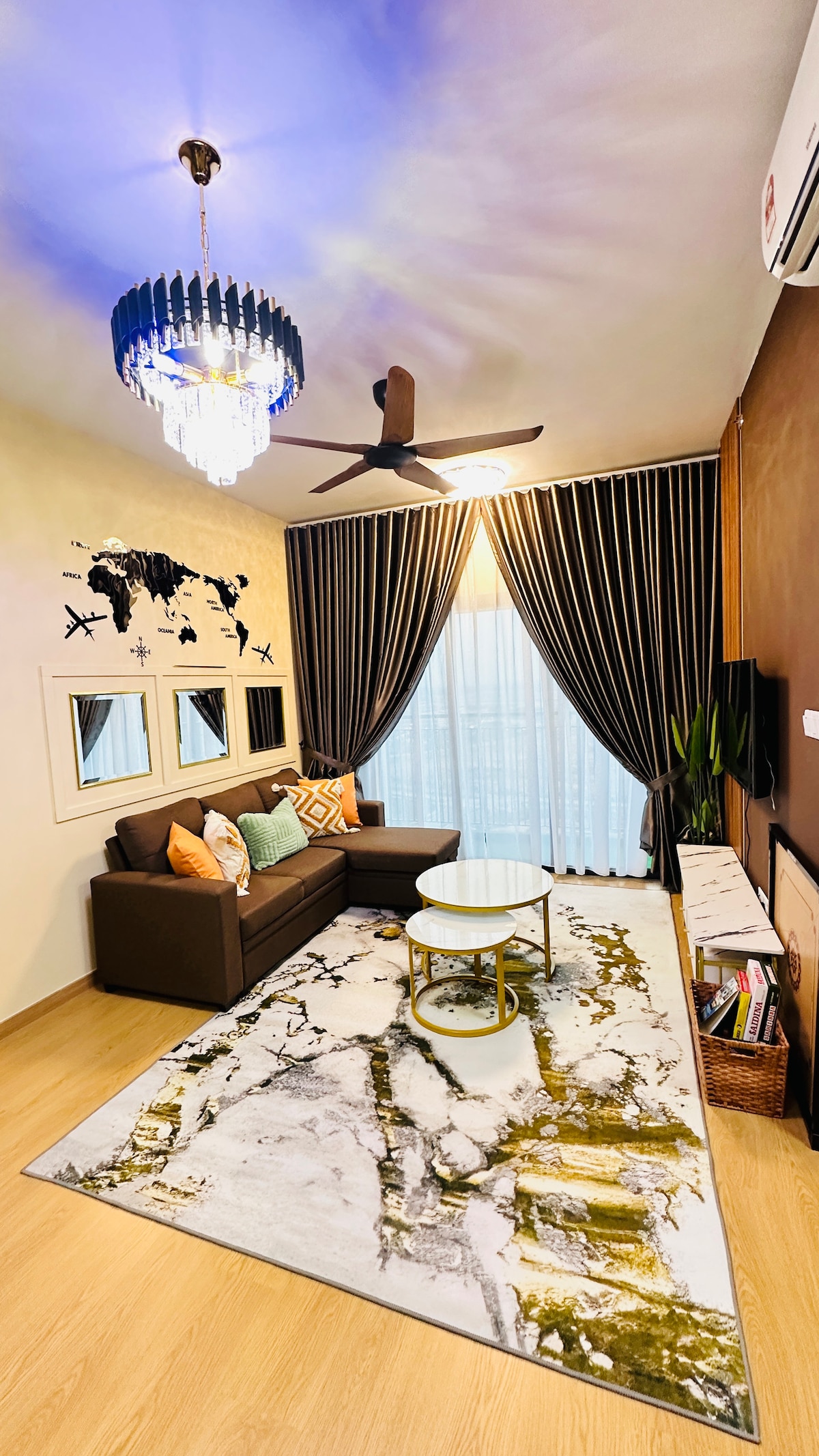 Svuíteanna maisiúcháin nua - aimseartha galánta. Cuirimid máistirsheomra leapa agus aonad iomlán ar fáil ina bhfuil 1 leaba bhanríona, 2 chotán do pháistí óga, seomra suí ina bhfuil tolg compoird, teilifíseán android, bord bia, cistinéad agus páirceáil saor in aisce. Tá ár seomraí feidhmiúcháin críochnaithe le háiseanna 5 réalta (linn snámha, giomnáisiam, agus páirc do pháistí) go hiomlán aircond, Wi - Fi, téitheoir uisce, micreathonnán, déantóir ceapairí, cuisneoir, tae caife saor in aisce, páirceáil saor in aisce agus slándáil 24 uair an chloig. In aice le KLIA agus Kuala Lumpur 20 -30 nóiméad sa charr amháin (le linn gan buaicamanna)!
