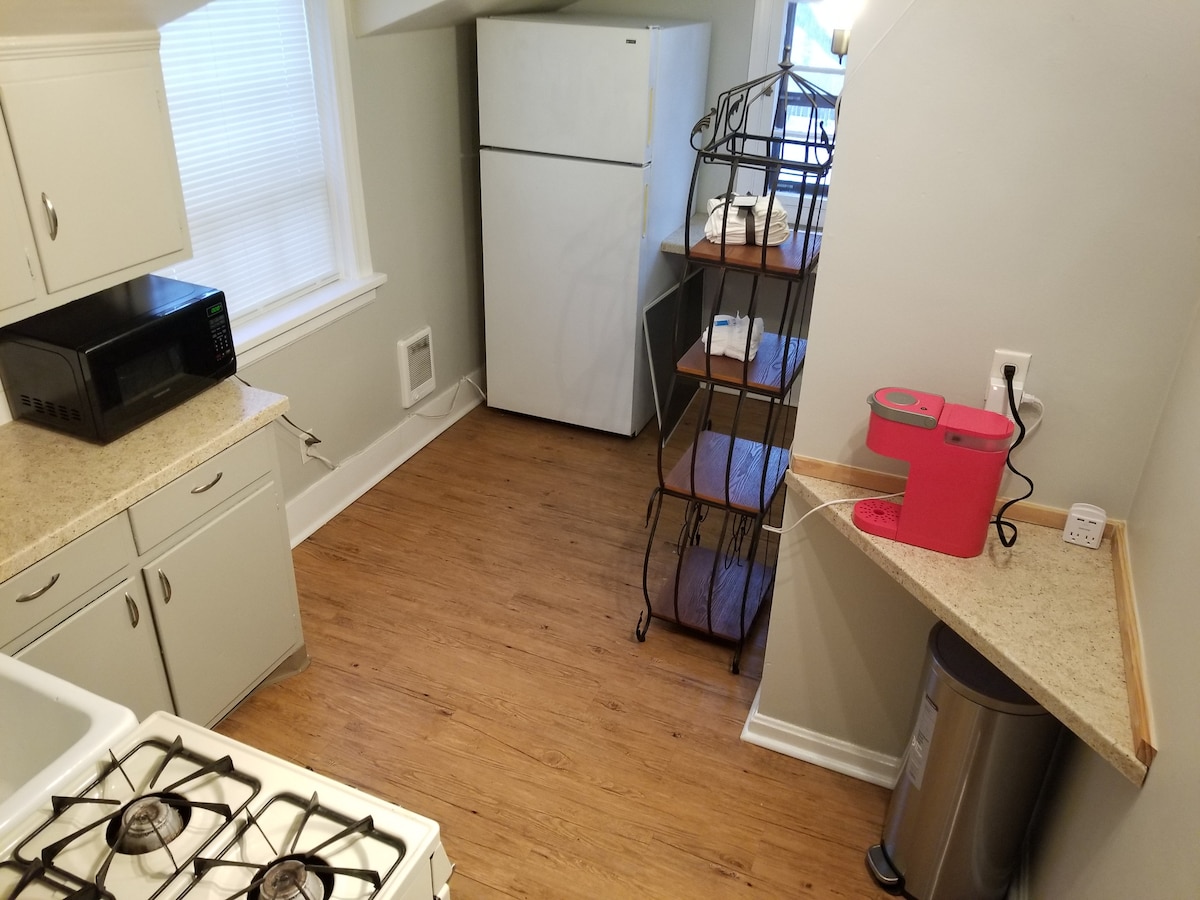 Lonnaithe i gCnoc Westnedge díreach ar imeall lár an bhaile. Díreach 1.5 míle go dtí croílár Downtown Kalamazoo. Is Coilíneach 1926 é a bhfuil stair shaibhir ag baint leis. Tugadh aire mhaith dó agus thaitin sé go mór leis. Tá 2 sheomra leapa sa teach suas staighre agus tá an tríú ceann ar an bpríomhurlár. Urláir adhmaid ar fud. Tá deic leathphríobháideach amach ón gcúl chun scíth a ligean le clós beag fálaithe i gclós cúil faoi cheannbhrat crann. Tá teach Everyman dearbhaithe mar Theach Stairiúil in Kalamazoo.
