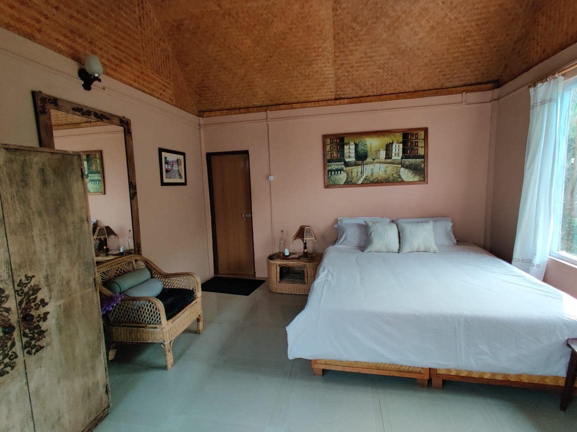 Tá 2 leaba dhúbailte agus 3 sheomra leapa faoi thrí sa teach Bambú le hatmaisféar baile. Tá na seomraí cosy&well coinnithe le 24 uair an chloig ag rith le huisce te agus fuar. Freastalaíonn muidVeg, Nonveg&traditional food.Surrounded ag foraois ghlas lush le radhairc áille den scoth agus le seomraí radhairc shléibhe ar an raon Himalayan. Tá deasc taistil againn freisin chun na riachtanais riachtanacha go léir a shocrú. Tá m'áit go maith do lánúineacha, eachtránaithe aonair, taistealaithe gnó, teaghlaigh (le páistí), agus grúpaí móra