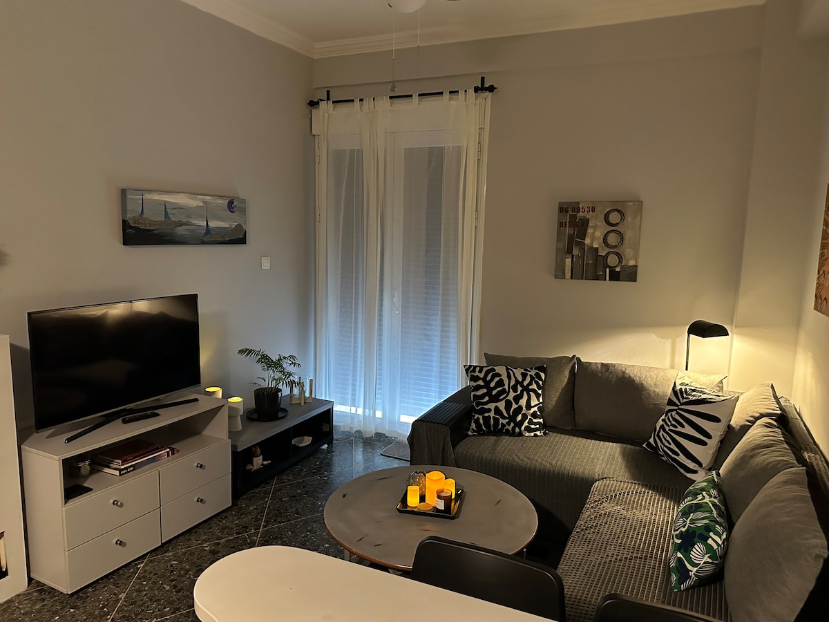 Árasán teolaí 1ú urláir le balcóin bheag, atá lonnaithe in Paleo Faliro, ceann de na bruachbhailte is fearr san Aithin le rochtain láithreach ar gach sainchomhartha sa chathair. Tá sé te, fáilteach agus suite go hidéalach i measc lár na hAithne, calafort Piraeus agus tránna áille. An - ghar don fharraige agus do stáisiún tram, gan ach siúlóid 5 nóiméad. An - oiriúnach do 2 aoi. Casann an tolg go leaba leathdhúbailte don 3ú haoi. Roinnt siopaí, sármhargaí, bialanna, caife, bácús, iad go léir in aice láimhe. Bain sult as d'fhanacht, bí ar do shuaimhneas.