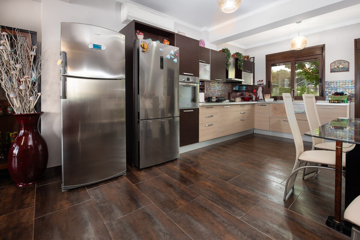 Tearmann Trí Leibhéal le Radharc na Farraige in Afytos le Rochtain ar an Trá agus Radhairc Áille🌊🌴 Fáilte go dtí ár n - árasán fairsing trí leibhéal, atá deartha le haghaidh chuimhneacháin dhodhearmadta samhraidh in Afytos! Lonnaithe díreach 2 nóiméad sa charr ó lár Afytos, cuireann an teach an chothromaíocht foirfe áisiúlachta agus suaimhnis ar fáil. Neadaithe i gceantar síochánta, soláthraíonn sé saoire shuaimhneach. Tá a spás páirceála príobháideach féin ag an árasán mar áis duit.🅿️