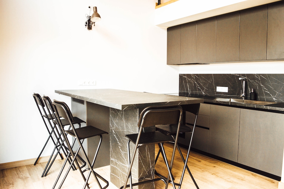 Árasáin ghalánta ar chósta na Mara Bailte in áit chiúin ar imeall na foraoise. Tá an chríoch fálaithe, páirceáil saor in aisce, clós súgartha. San árasán: 1 leaba mhór, 1 leaba shingil, tolg le haghaidh scíthe, áit itheacháin, cistin, áit oibre. Laistigh d'achar siúil: 10 nóiméad go dtí an fharraige, 5 nóiméad go Maxim, 15 nóiméad go dtí stad an bhus. Tá 2 bhialann, ceaintín, cógaslanna sa chathair. Más mian leat taitneamh a bhaint as an gciúnas agus imeacht ón gcathair, is é seo an áit duitse! Fáilte!