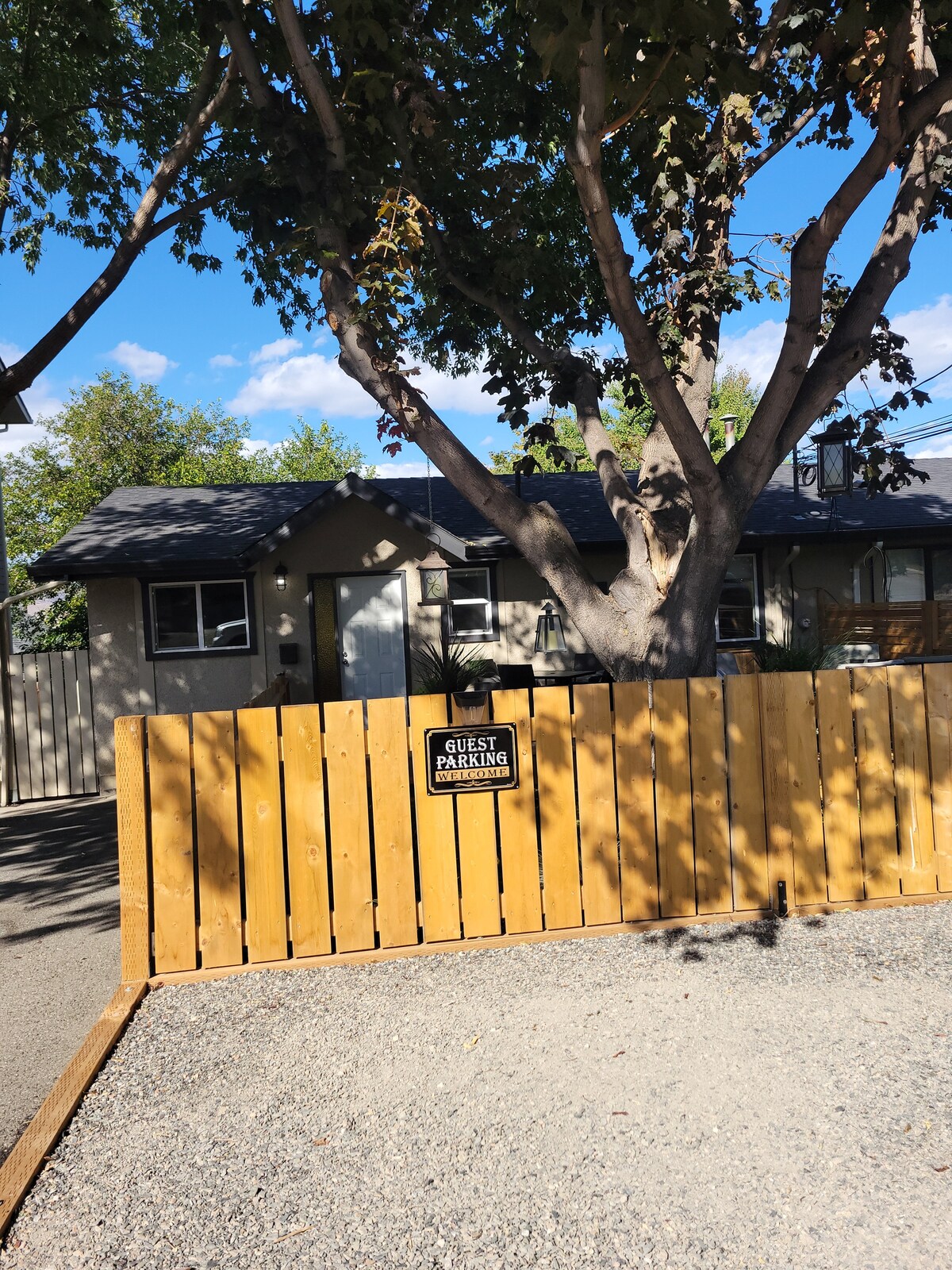 Cuir tús le do bhróga agus lig do scíth sa seomra leapa suaimhneach seo cois abhann. Is sraith ar leibhéal na talún solas an lae é seo ina bhfuil fuinneoga móra geala. Is pobal álainn é Westsyde ina bhfuil go leor saoráidí atá oiriúnach do theaghlaigh in aice láimhe. Is siúlóid 5 nóiméad í an pháirc chéid agus cuimsíonn sí cosáin siúil, zú peataireachta, clós súgartha, pillín splancscáileáin, rian caidéil rothar, galf diosca, agus páirc madraí. Níl i Downtown Kamloops ach tiomáint ghearr 15 nóiméad. Is teaghlach gnóthach de cheathrar thuas staighre muid agus ba bhreá linn tú a óstáil inár dteach!