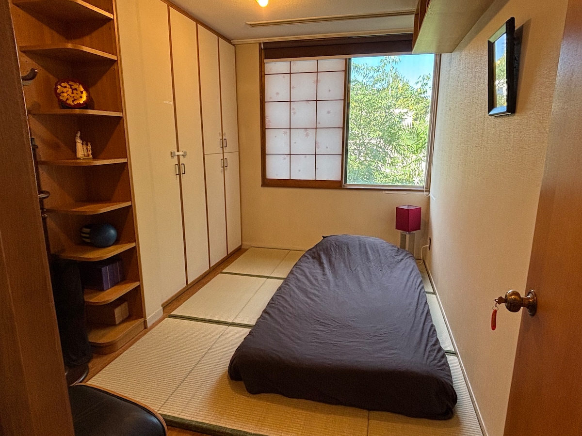 The guest room is located a 230-meter walk from Kitazawa Station on the Keio Line. 23square meters. It's close to the train station, so please be aware of noise sensitivity. The room has a separate wet and dry bathroom. There's a king-size bed and a bunk bed. It might be a bit cramped for four people, but two or three people are more comfortable. Kami-Kitazawa Station is a 13-minute direct train ride from Shinjuku. It's convenient for Shimokitazawa, Kichijoji, Mt. Takao, and Sanrio Land.