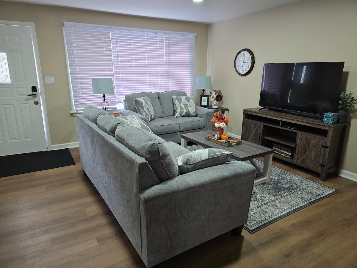 Árasán fairsing álainn atá foirfe do thascanna oibre fadtéarmacha nó do thaistealaithe ar mian leo gach compord sa bhaile. Codlaíonn sé suas le 5; tolg Rí, Banríona + Saoráidí abound: ~ wifi SAOR IN aisce ~2 theilifís chliste w/HBO, Showtime, Cinemax, 144 cainéal cábla, Netflix réidh (le do chuntas )~ Cistin iomlán le cuisneoir/sorn gáis/miasniteoir/micreathonnán/oigheann tóstaer/Keurig ~ meaisín níocháin SAOR IN AISCE & triomadóir le soláthairtí bunúsacha ~Seomra folctha w/cithfholcadán/teaglama tobáin ~ Neamh - chaitheamh tobac ~ Glanadh seachtainiúil/níochán línéadaigh in aisce le haghaidh tréimhsí fanachta fada