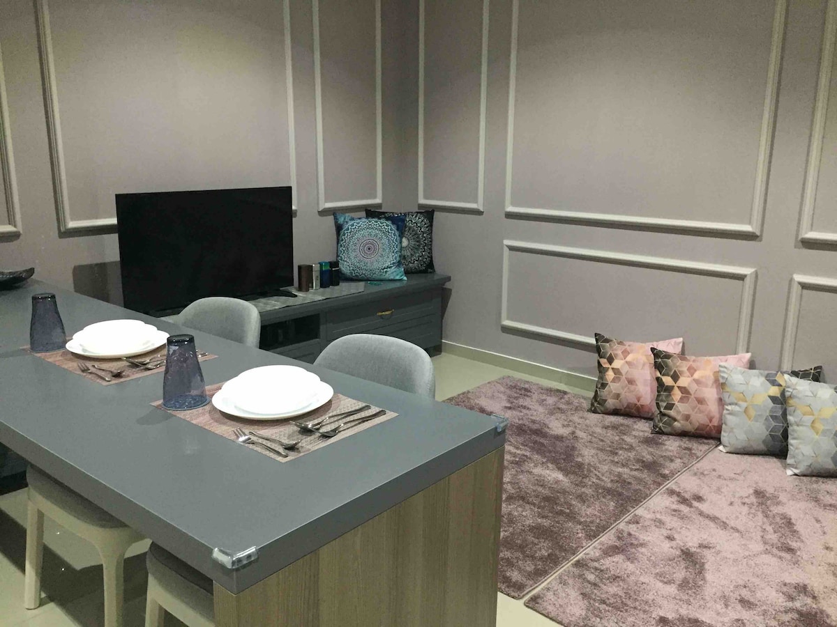 Suíomh straitéiseach ina bhfuil ionad siopadóireachta, ionad coinbhinsiúin, siopaí áisiúla, bialanna agus ionaid bainise laistigh d'achar siúil. 3 nóiméad go Meall Chathair Setia, 3 nóiméad chuig Ionad Comhdhála Chathair Setia, 10 nóiméad go Klang. Siamsaíocht éagsúil idir Bosca Teilifíse le Wi - Fi Am ardluais agus cluichí boird lán le spraoi. Bain sult as íomhánna beoga lenár dTeilifís Chliste 50 orlach! Cistin atá feistithe le cuisneoir, cócaireán ionduchtaithe, uirlisí, pota/friochtán, srl. Fáilte le haghaidh laethanta saoire teaghlaigh/turas gnó!