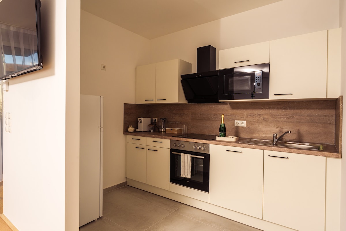 Árasán nua-aimseartha i suíomh eisiach le rochtain ar an linn snámha agus ar an ionad aclaíochta. Bíodh saol galánta agat díreach ar an Danóib – le leaba dhúbailte, tolg leapa, cistin lánfheistithe, Wi-Fi agus teilifís chliste. Foirfe do lánúineacha, do thaistealaithe gnó nó do theaghlaigh bheaga a bhfuil meas acu ar chompord, ar shuíomh agus ar radhairc ar Vín.