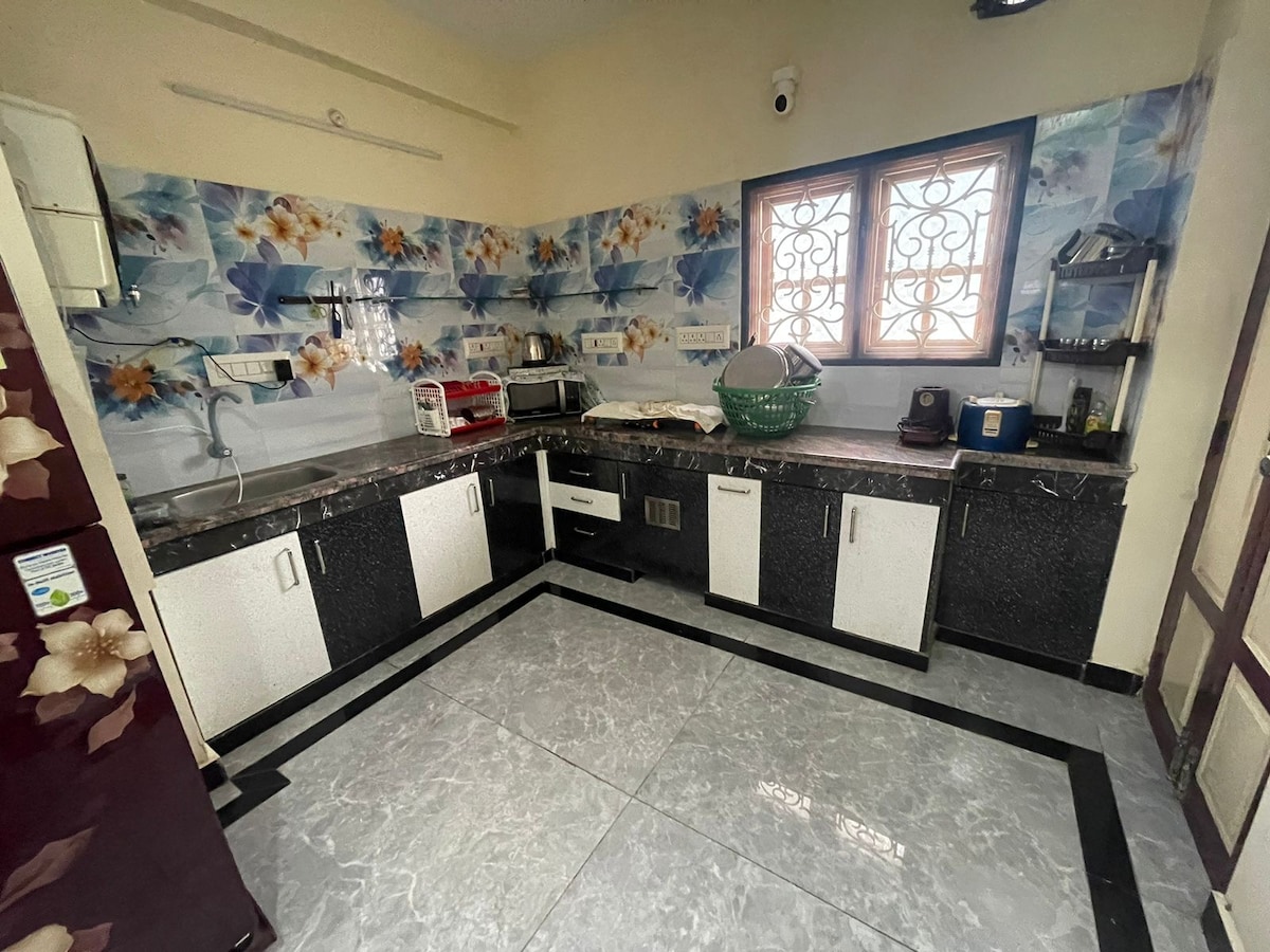 Is árasán 2 sheomra leapa é seo atá suite ar an gcéad urlár in áit shuaimhneach shuaimhneach. Foirfe dóibh siúd atá ag lorg suaimhneas, tá an t - árasán suite go háisiúil in aice le teampaill Navagraha, ag tairiscint rochtain éasca do chuairteanna spioradálta. Gnéithe na réadmhaoine; Seomra suí fairsing aerach le solas nádúrtha. Dhá sheomra leapa AC le leapacha de mhéid banríona, cistin atá feistithe go maith, seomra folctha glan, timpeallacht chiúin, atá oiriúnach le haghaidh scíthe, gan mórán torainn tráchta.