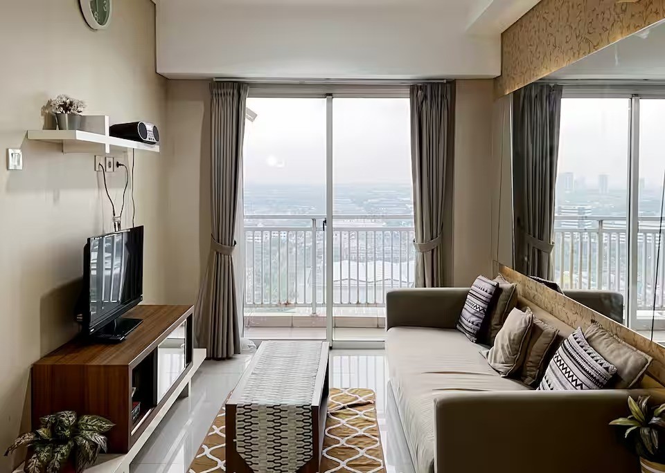 Árasán Cluthar & Nua - Aimseartha nua in Meikarta – Foirfe do Thréimhsí Fanachta Gearra & Fada in Cikarang Bain sult as árasán cluthar i gcroílár Cikarang, in aice le hionaid siopadóireachta, páirceanna agus ceantair thionsclaíocha. Áiseanna: •2 sheomra leapa le tocht fairsing • Cool AC • Cistin iomlán le huirlisí chun cócaireacht a dhéanamh • Teilifís Chliste • Balcóin • Slándáil 24/7 •Páirceáil fhairsing Suíomh Áisiúil • 5 nóiméad ar shiúl ó ionad Meikarta • In aice le Lippo Cikarang Mall • Rochtain éasca ar dhola - bhóthar Cikampek • Níl ach 1 uair an chloig ó Soekarno - HattAirport