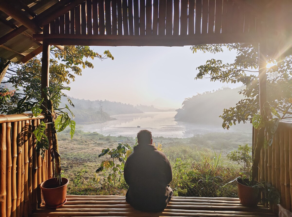 Experience a serene riverside getaway surrounded by coconut trees and birdsong. Watch the monsoon arrive on India's west coast at this renowned birding hotspot. Enjoy three tents and a cabin, complete with amenities such as air conditioning (in the cabin and studio tent) and portable fans (tents). Dip into the Madisalu River, explore the nearby village, and witness stunning sunsets at the hanging bridge. Delicious homemade breakfasts await, with options to customize your stay.