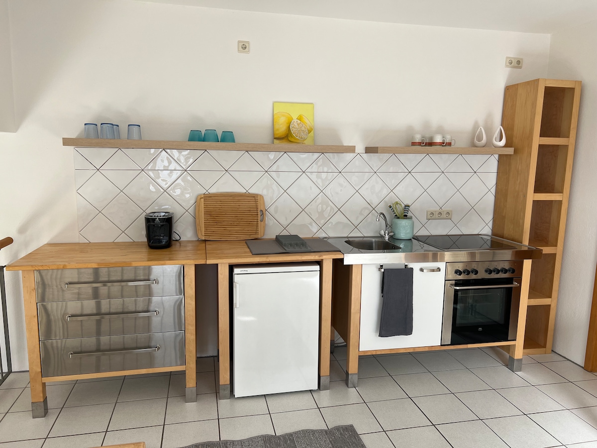 Saoire tíre shuaimhneach sa Siebengebirge nó fanacht gnó taitneamhach inár n - árasán stiúideo álainn geal (ffee. 50 m ∙) i dtimpeallacht chiúin le bealach isteach ar leith agus suíocháin lasmuigh. Tá an t - árasán suite i gceantar sléibhe Königswinter ag bun Mount of Olives agus is pointe tosaigh foirfe é le haghaidh siúlóidí. Tá sé oiriúnach do theaghlach beag, do shiúlóirí nó do rothaithe. Tá turais éagsúla sa chomharsanacht láithreach nó níos faide i gcéin.
