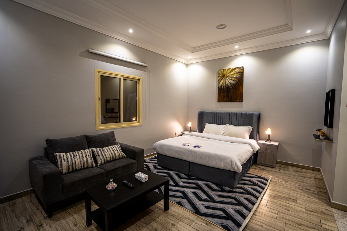 ستديو كبير بتصميم أنيق ولمسات فخمة يحتوي على سرير مريح، تلفزيون ذكي، إنترنت سريع، وجاكوزي خاص دورة مياه بتشطيب فندقي، الموقع في حي العليا الخبر، قريب من الكافيهات والمطاعم والخدمات الدخول ذاتي لتجربة هادئة ومريحة.