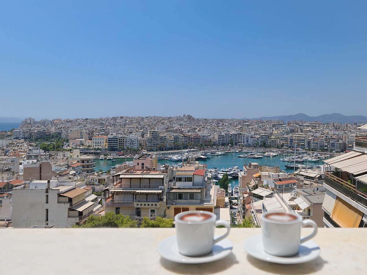 Tá sé suite i gceantar ciúin sábháilte Piraeus os comhair na farraige agus mar sin tá radharc iontach ar an bhfarraige lánléargais ann. Is áit chluthar agus iontach é dóibh siúd ar mian leo an fharraige a mhothú beo,ach anáil ar shiúl ón bhfarraige. Is féidir leat radharc gan teorainn a bheith agat le luaimh, báid seoltóireachta agus báid iascaireachta thraidisiúnta a bhíonn ag seoltóireacht os comhair do shúile. Bíonn deis ag wiil cuairt a thabhairt ar go leor áiteanna i bhfad i gcéin. Bain sult as eispéireas maireachtála sa cheantar is áille in Piraeus