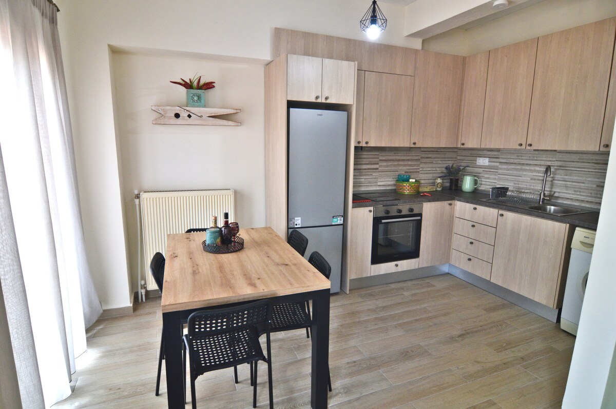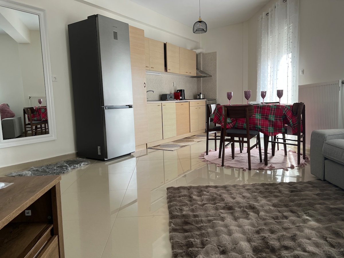 Árasán nua 114 méadar cearnach. 2ú hurlár atá suite i mbruachbhailte Kastoria. Níl sé ach 2 km ó lár na cathrach. In aice láimhe tá cógaslann, ollmhargadh, bácús, caiféanna, pizzeria agus an Institiúid Ardteicneolaíochta. Tá an teach lánfheistithe chun fanacht taitneamhach ,compordach ,teolaí agus ciúin a chur ar fáil duit.