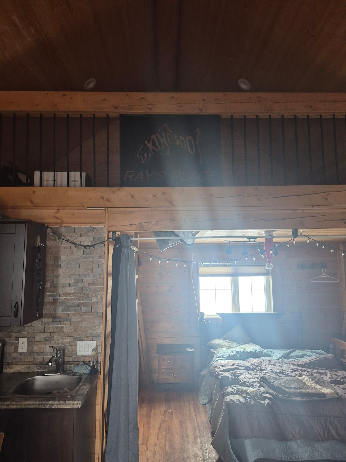 Fáilte chuig The Pine; Cábán beag bídeach atá neadaithe sna crainn ar chúinne thoir theas Pháirc Réigiúnach Sandy Beach, Saskatchewan. Tá an Pine anseo chun an ósais chiúin sin a thairiscint. An ceann a theastaíonn uainn chun an saol mórthimpeall orainn a athmhuirearú, a athcheangal, a athnuachan agus freagra a thabhairt air. Na saoráidí go léir a theastaíonn uait a thairiscint! Níl le déanamh agat ach d'éadaí, do bhia agus leabhar maith a phacáil! Le radhairc ar an loch agus gan ach nóiméad siúil go dtí an trá! Insta - @ thepine_ sandybeach