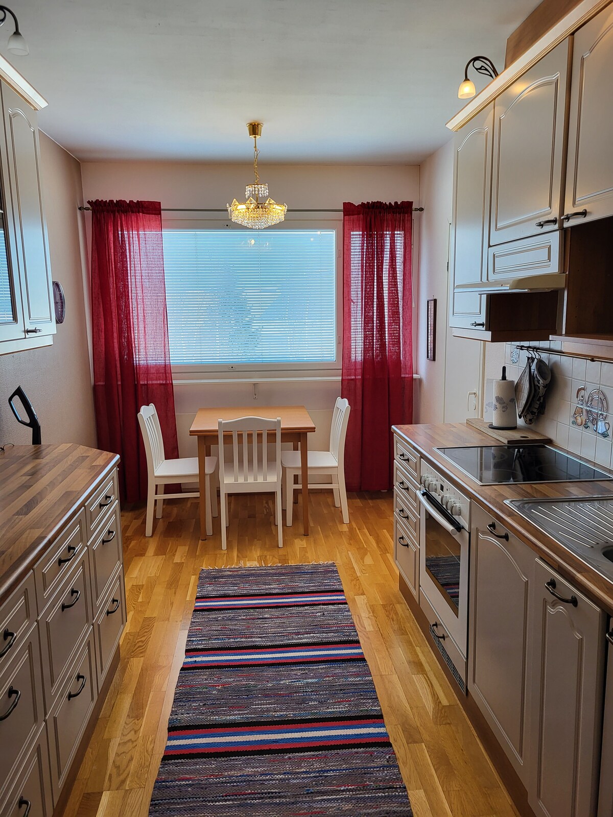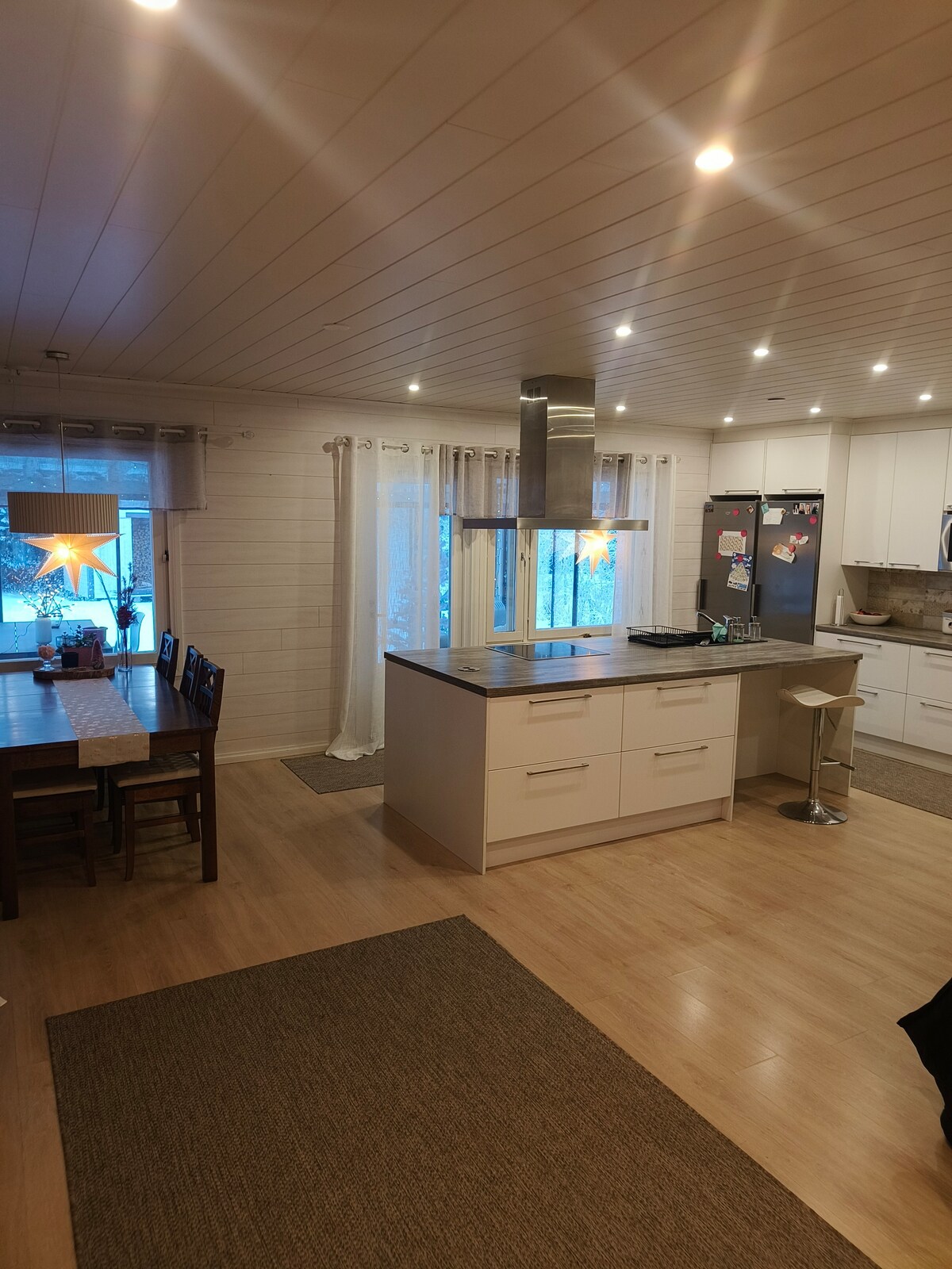 Fáilte mhór romhat fanacht i dteach príobháideach cluthar céad méadar cearnach, i suíomh suaimhneach agus gleoite cois farraige. Tá línéadach tí agus tuáillí, bunriachtanais chócaireachta (spíosraí, ola chócaireachta, srl.), glantach níocháin agus an trealamh bunúsach go léir a theastaíonn chun cónaí ann san áireamh sa phraghas lóistín. Tá leaba dhúbailte sa seomra leapa agus tá 2 leaba thoilg bhreise sna seomraí eile. Tá sé 120km go Rovaniemi. Tá sé 20km go Kemi agus Tornio.