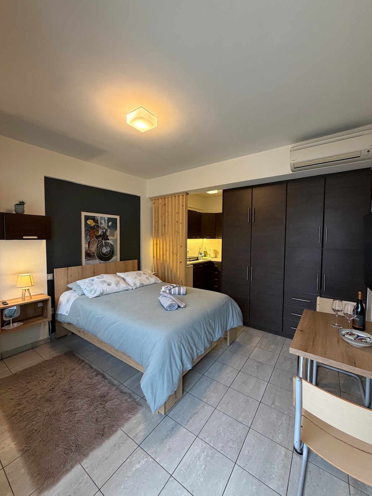 Árasán compordach glan feidhmiúil aon seomra leapa, seomra suí, seomra folctha agus cistin ar an dara hurlár atá suite i gceantar ciúin agus an - sábháilte i lár na cathrach. Tá sólás éagsúil i ngach seomra aíochta, a leithéid d'aerchóiriú, cuisneoir, teilifís, meaisín níocháin. Is féidir leis freastal ar suas le 4 dhuine. Tá páirceáil saor in aisce ar fáil taobh thiar de agus os comhair an fhoirgnimh freisin mura bhfuil sé áitithe ag an am sin.