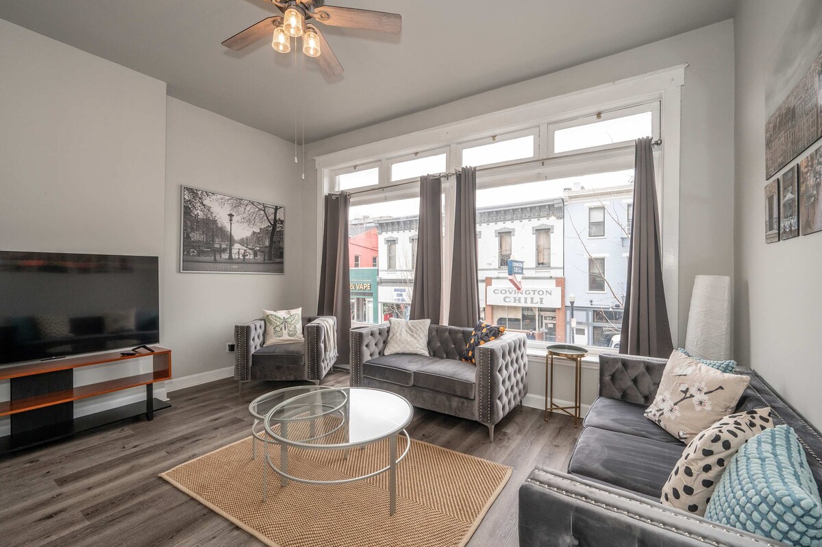 Buaileann áiseanna nua - aimseartha le draíocht stairiúil sa árasán príobháideach, fairsing seo! Suite i gcomharsanacht stairiúil Covington, atá suite go háisiúil: - 5 Nóiméad go Downtown (staidiam Paul Brown, Great American Ballpark, OTR, srl.) - 10 Nóiméad go dtí ospidéal Leanaí Cincinnati - béal dorais le hUisceadán Bhaile Uí Fhiacháin agus Levee. Tá Wi - Fi fiopach, teilifís, i meaisín níocháin/triomadóir aonaid agus is féidir leapacha a chur leis mar go bhfuil na seomraí an - mhór!