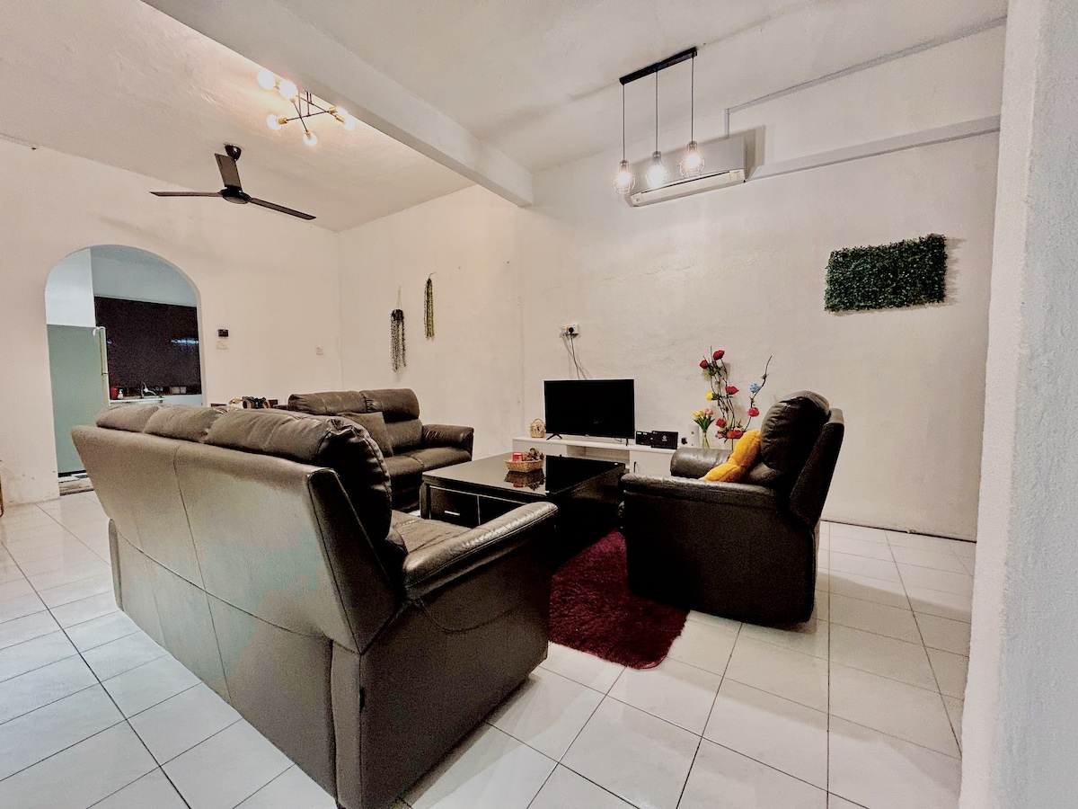 🌿 Fanacht Duilleog Pandan — Taiping Fáilte go Boran Leaf, teach dhá stór atá spreagtha ag tréith na Malaeisia "Borland Leaf ", tá an teach iomlán deartha le torthaí uachtar glasa le troscán te chun spás compordach croíúil a chruthú.Oiriúnach do theaghlaigh mhóra, teacht le chéile cairde, gníomhaíochtaí foirne beaga. 🏠 5 sheomra 3 leithreas, seomra suí le haerchóiriú, teilifís, consól cluichí, peil bhoird, srl., cistin le tábla bia, cuisneoir, dáileoir uisce agus uirlisí cistine, go leor spásanna páirceála, éasca le tiomáint. 📍 In aice le nithe móra is díol spéise in Taiping: • Pacific Lake Park 3.2 km • Zú Taiping 4.5km • Downtown Taiping 2.2 km • Sliabh Bukiras 5 km • Meall Aeon 3.8 km ✨ Ná caith tobac sa teach, bí ciúin, bíodh meas agat ar an gcomharsanacht. Fáilte chun áirithint a dhéanamh agus lig do do thuras Taiping tosú!