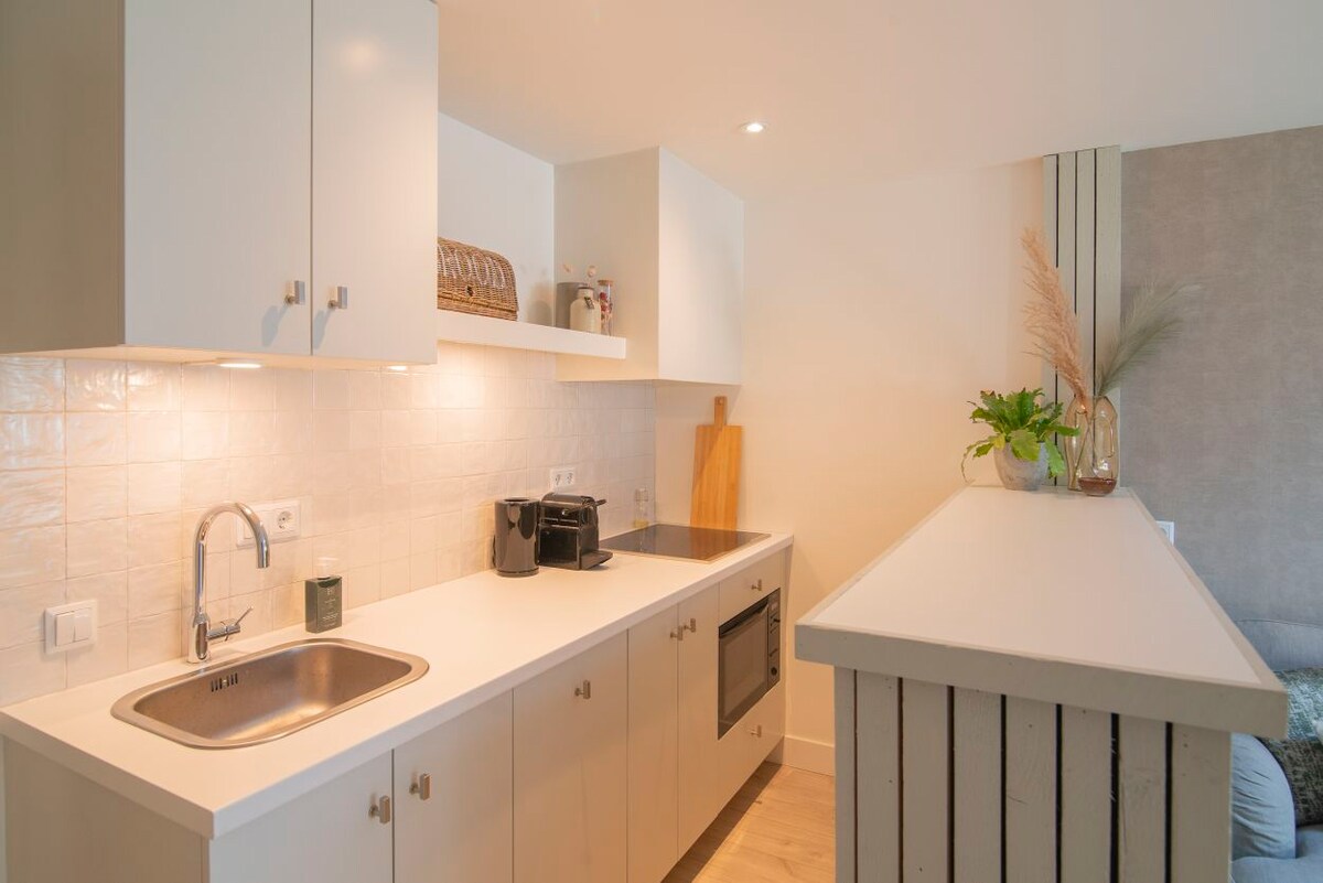 Árasán 40m2! Seomra folctha: doirteal, cithfholcadán báistí agus tobán te do bheirt Seomra suí: aerchóiriú, tolg leisciúil (codlata) le teilifíseán CLISTE 55 orlach le NLziet, Netflix agus Chromecast Seomra leapa: Earrach bosca atá inchoigeartaithe go leictreach ar mhéid an rí, Teilifís CHLISTE 55 orlach Cistin/áit itheacháin: bord itheacháin do 4 dhuine, meaisín espresso, cistin lánfheistithe: oigheann, micreathonnán, cuisneoir, sorn, agus miasniteoir, srl. Bricfeasta: táille bhreise €13 in aghaidh an duine in aghaidh na hoíche Seomra allais príobháideach: €12.50 an duine in aghaidh an tseisiúin 90 nóiméad Deic phríobháideach i ngarraí cúil